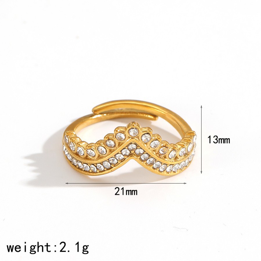 Strass en acier inoxydable Bague, Acier inoxydable 304, Placage de couleur d'or, bijoux de mode & avec strass, doré, Vendu par PC