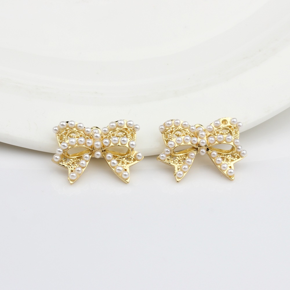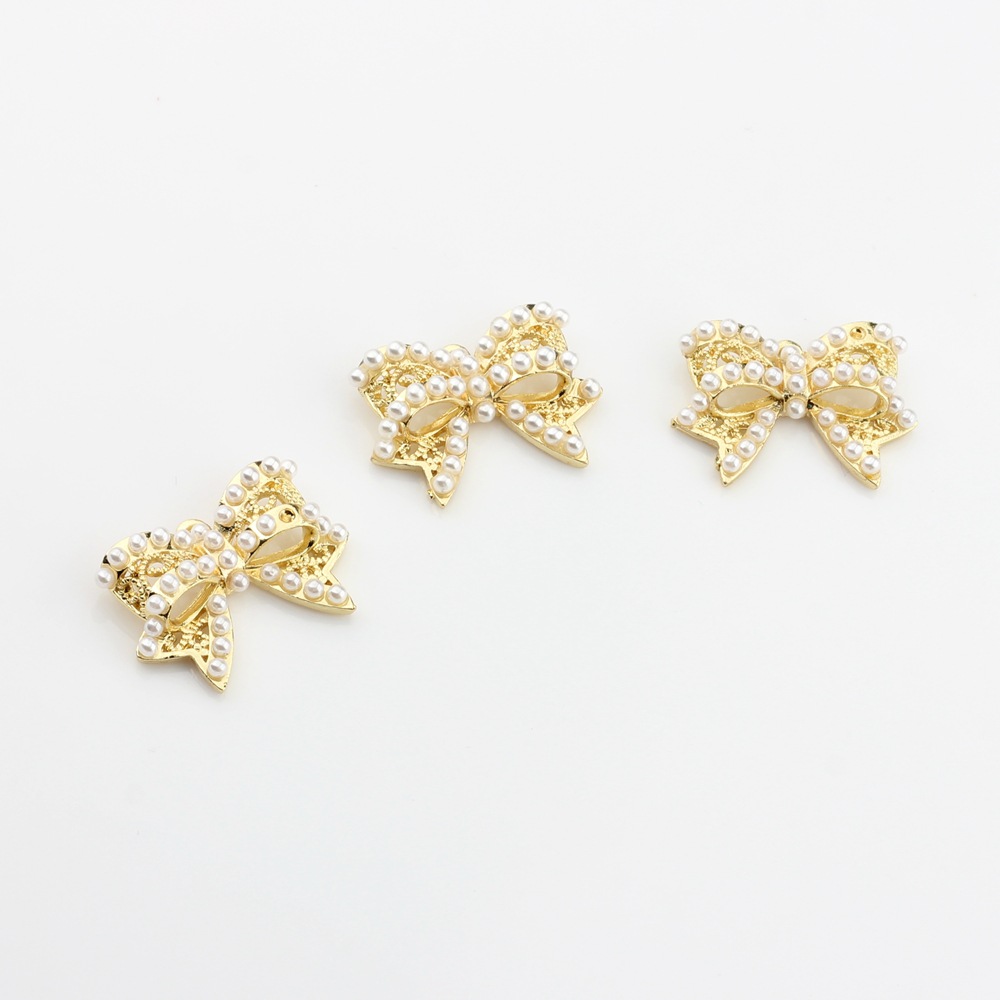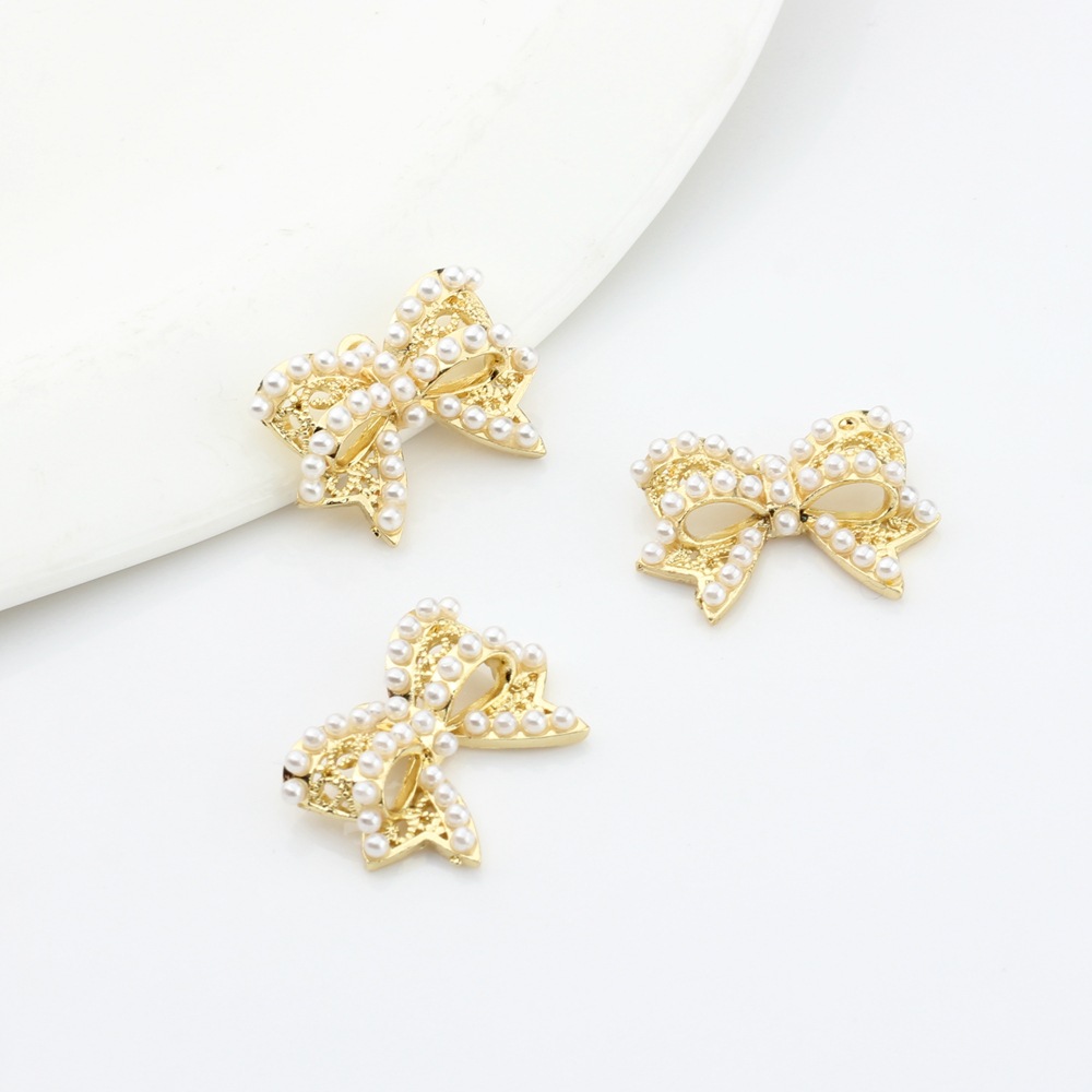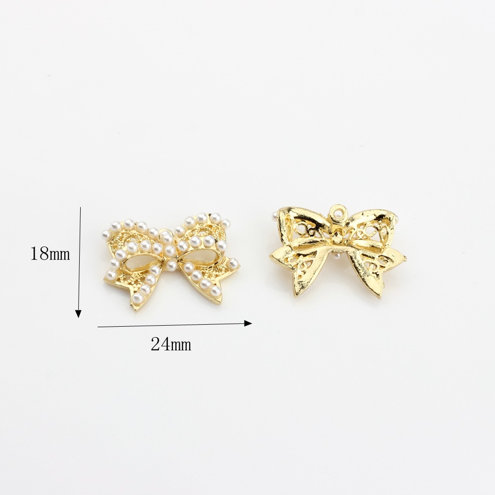 Zinc Alloy Bowknot pendentifs, alliage de zinc, avec perle de plastique, Noeud papillon, Placage de couleur d'or, DIY, plus de couleurs à choisir, 100PC/sac, Vendu par sac