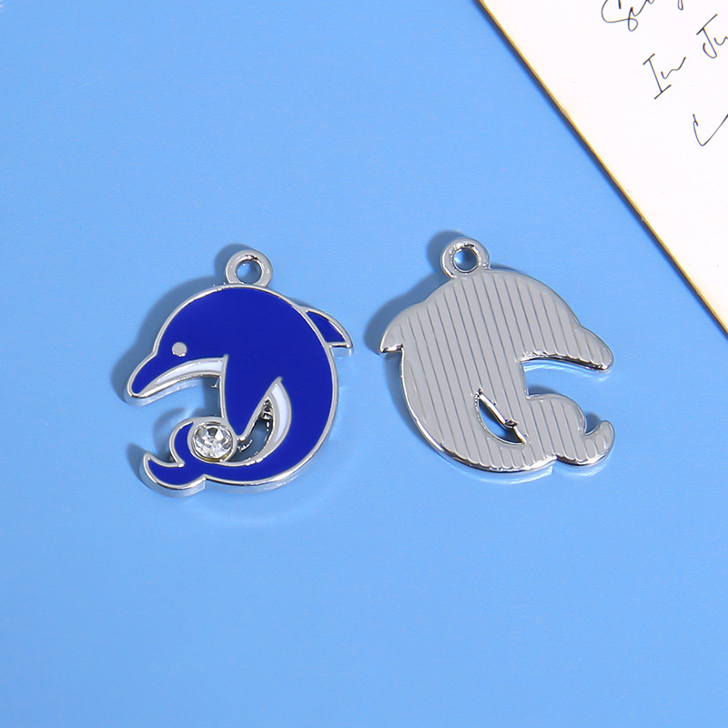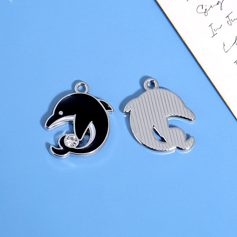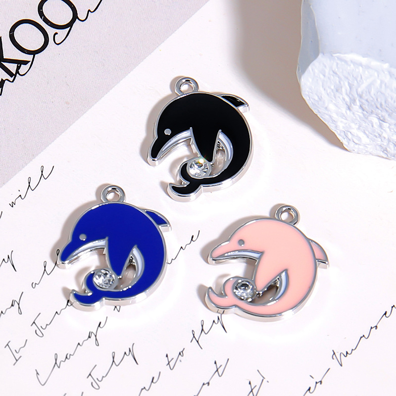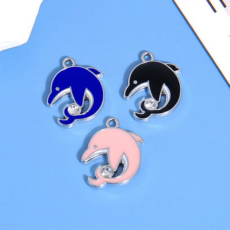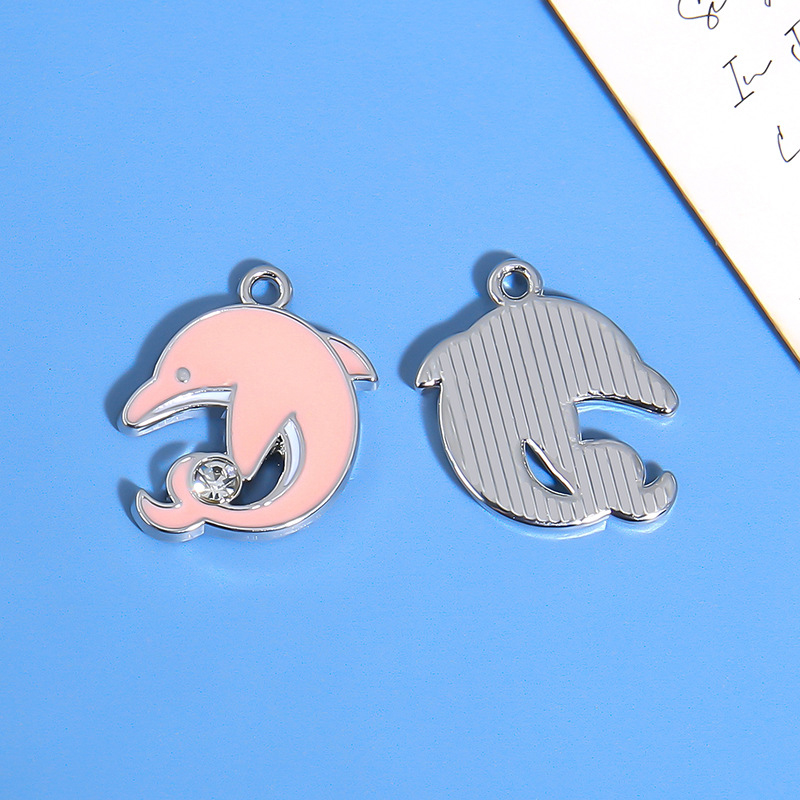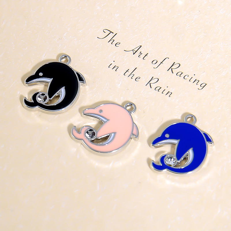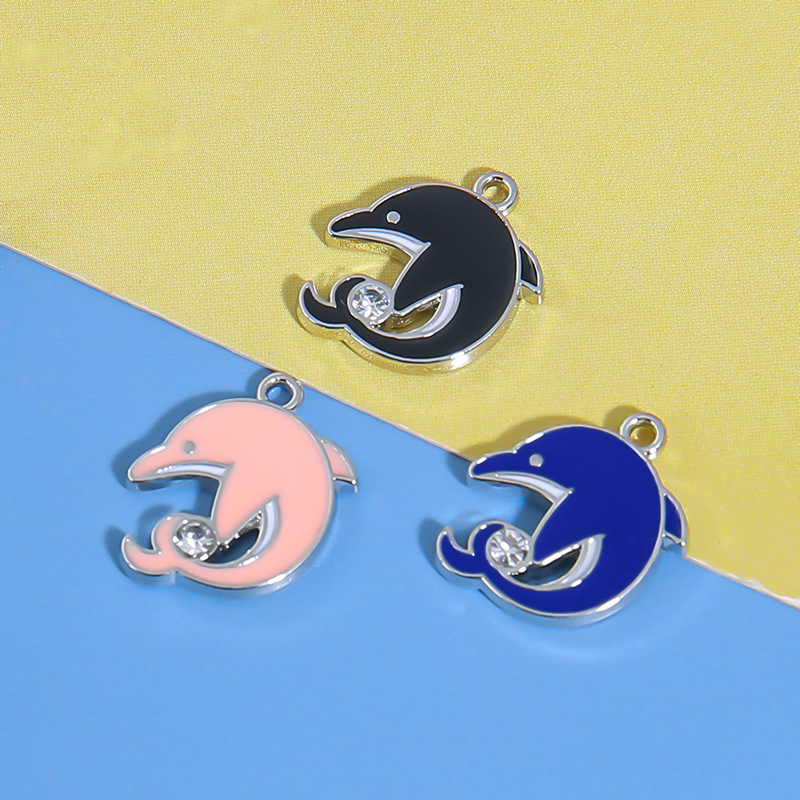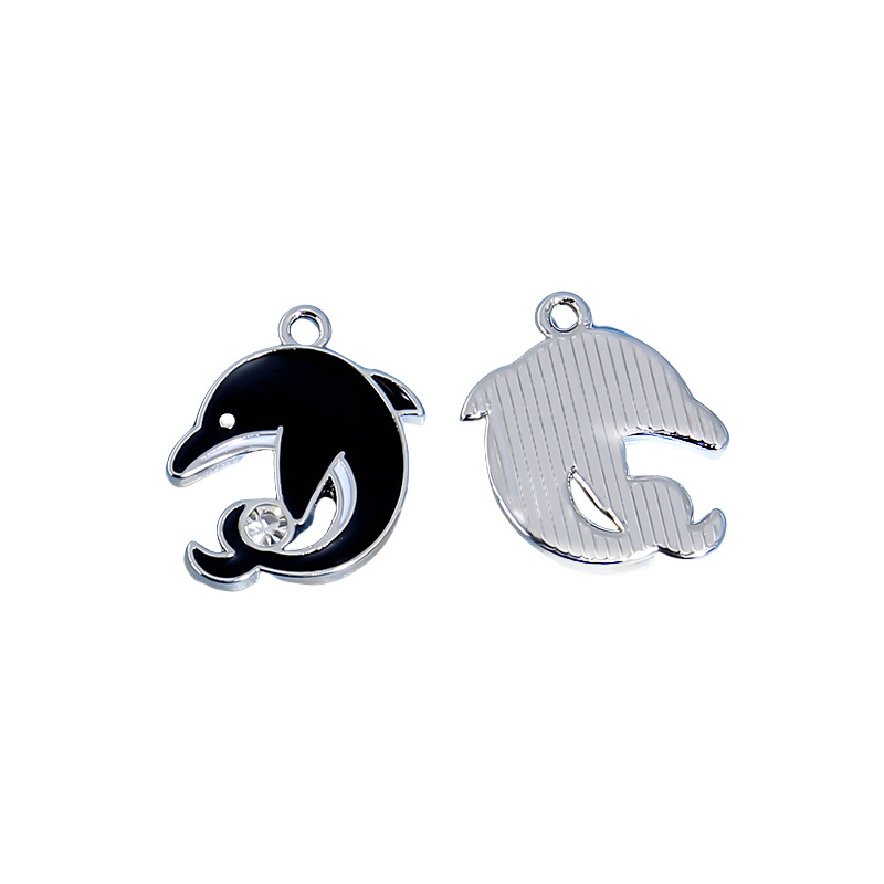 Zinc Alloy émail Pendants, alliage de zinc, dauphin, Placage, DIY & avec strass, plus de couleurs à choisir, 10PC/sac, Vendu par sac