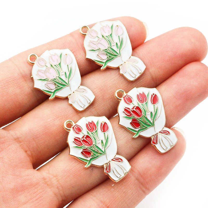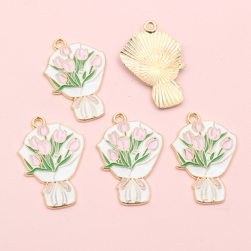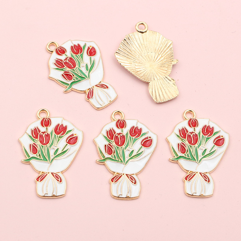 Zinc Alloy émail Pendants, alliage de zinc, Bouquet, DIY, plus de couleurs à choisir, 27x18mm, 100PC/sac, Vendu par sac