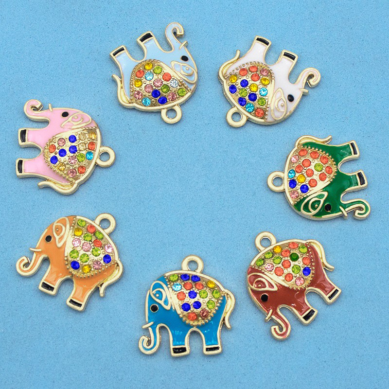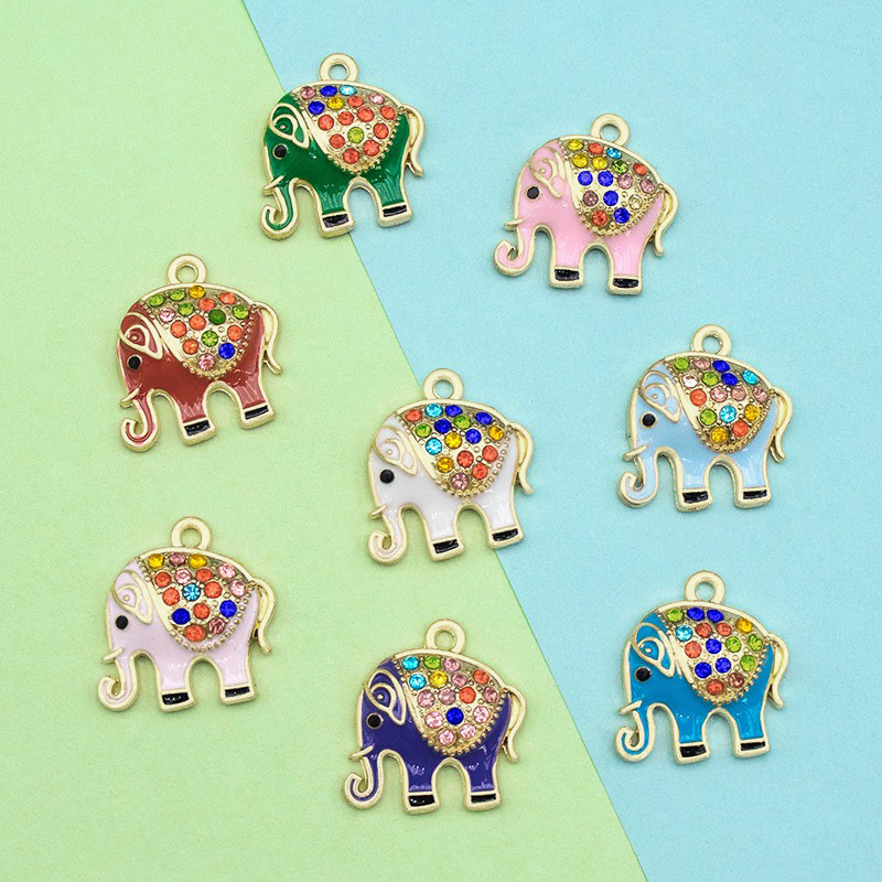 Zinc Alloy émail Pendants, alliage de zinc, éléphant, Placage de couleur d'or, DIY & avec strass, plus de couleurs à choisir, 17x19mm, Vendu par PC