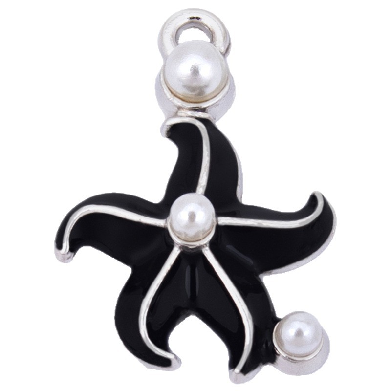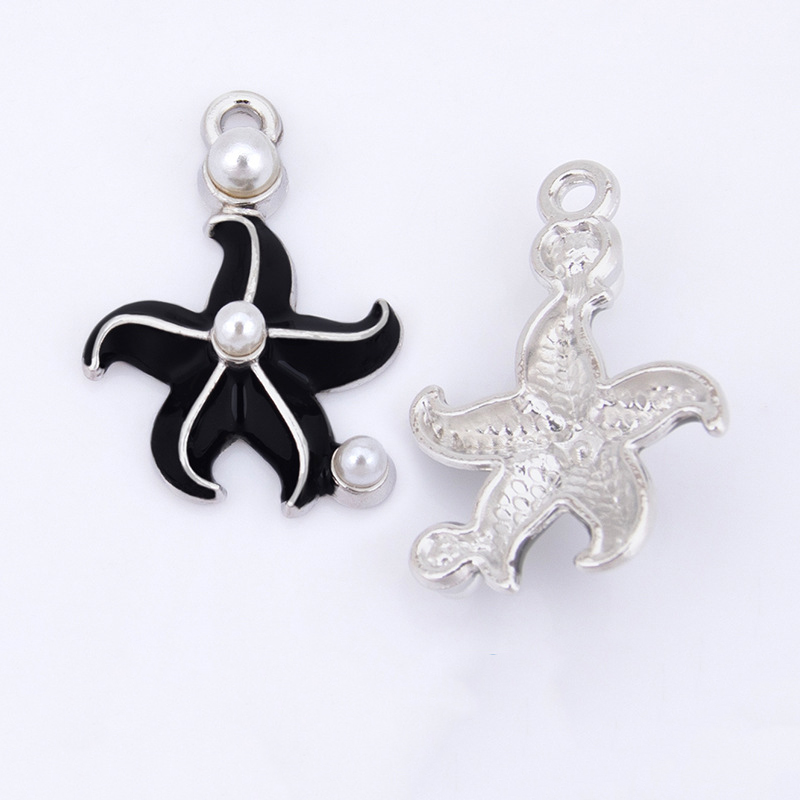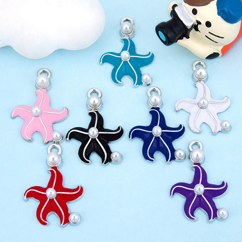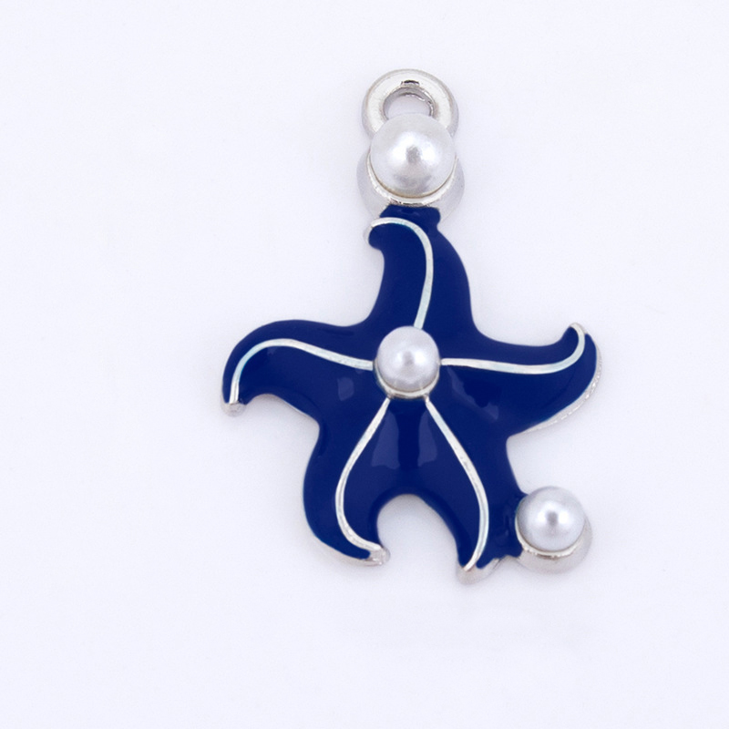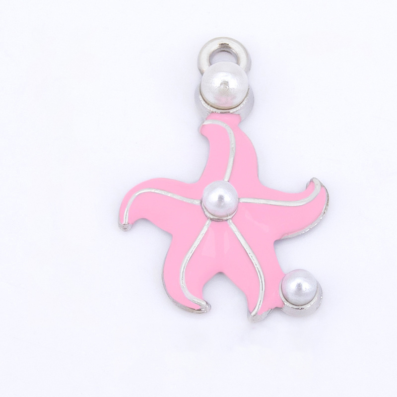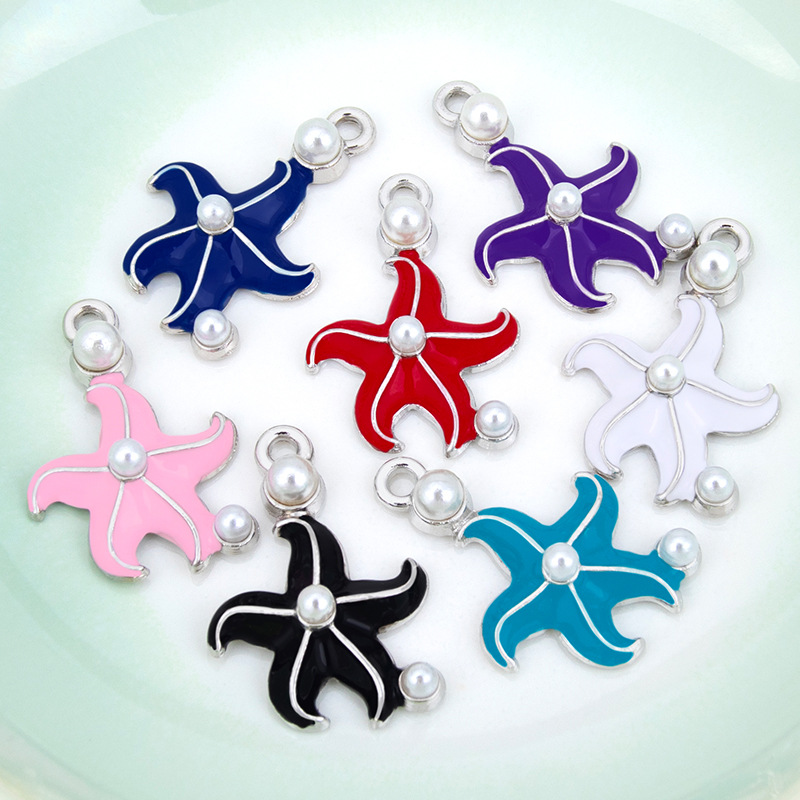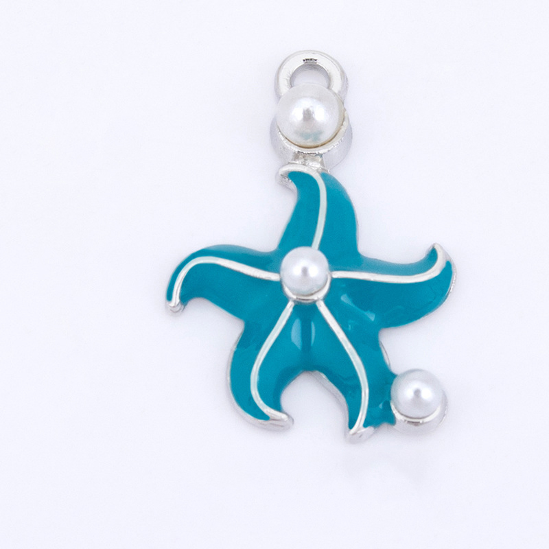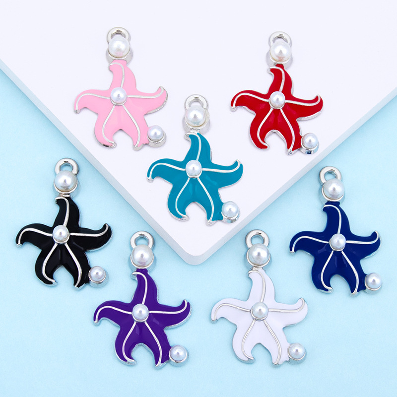 Zinc Alloy émail Pendants, alliage de zinc, avec perle de plastique, étoile de mer, Placage de couleur argentée, DIY, plus de couleurs à choisir, 17x26mm, Vendu par PC