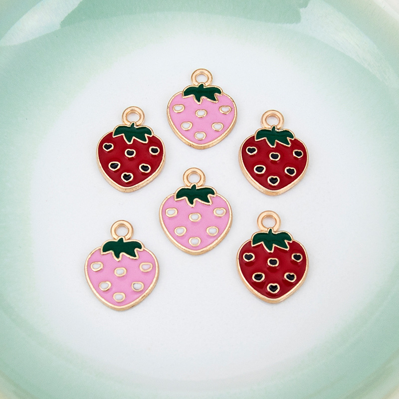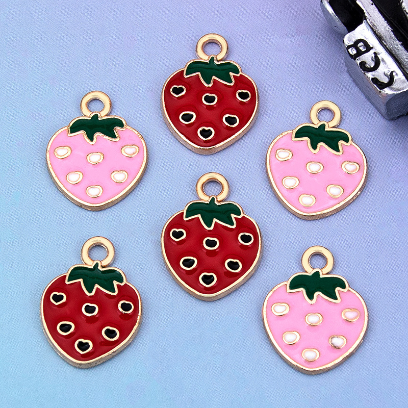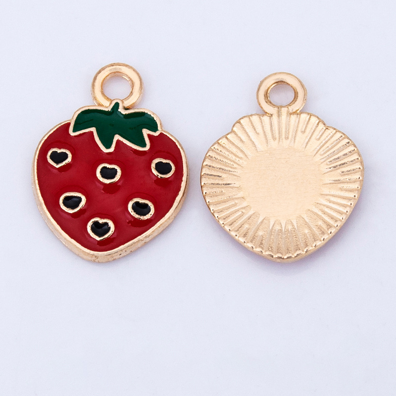 Zinc Alloy émail Pendants, alliage de zinc, fraise, Placage de couleur d'or, DIY, plus de couleurs à choisir, 12x16mm, Vendu par PC