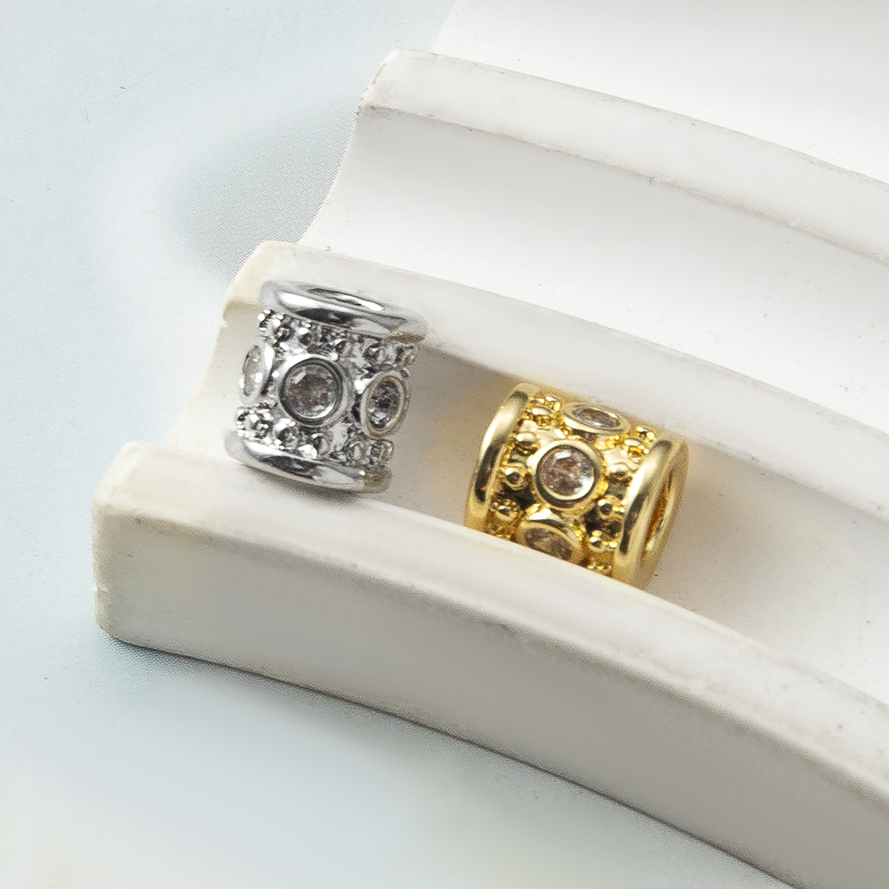 Zircon Micro Pave laiton European Perles, Placage, DIY & pavé de micro zircon, plus de couleurs à choisir, protéger l'environnement, sans nickel, plomb et cadmium, 7.86x8.60x8.60mm, Vendu par PC