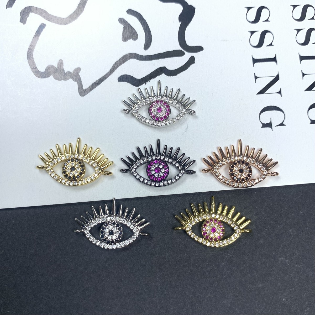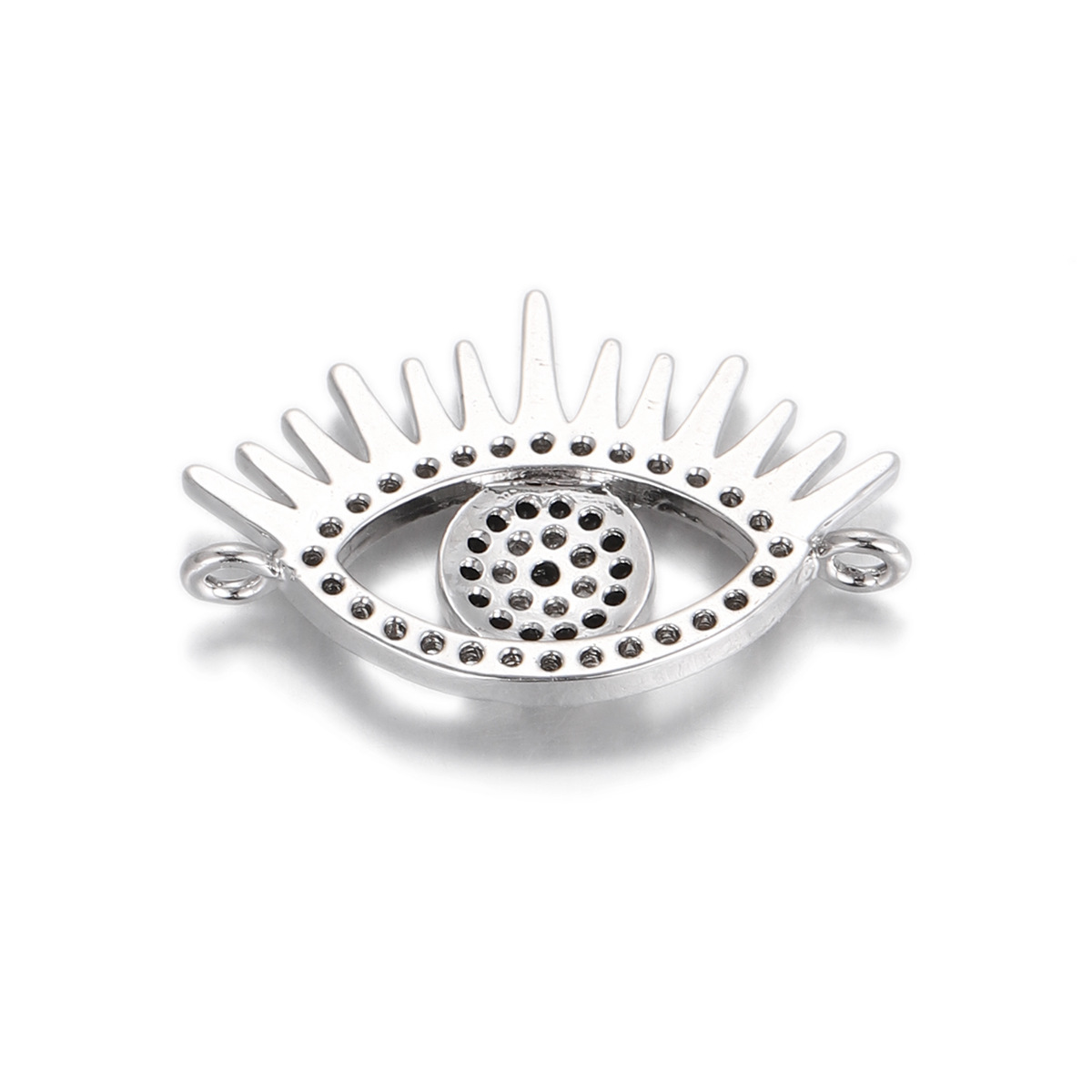 Zircon cubique Micro Pave laiton Connecteur, alliage de zinc, Mauvais œil, Placage, DIY & pavé de micro zircon & boucle de 1/1, plus de couleurs à choisir, protéger l'environnement, sans nickel, plomb et cadmium, 22x15mm, Vendu par PC