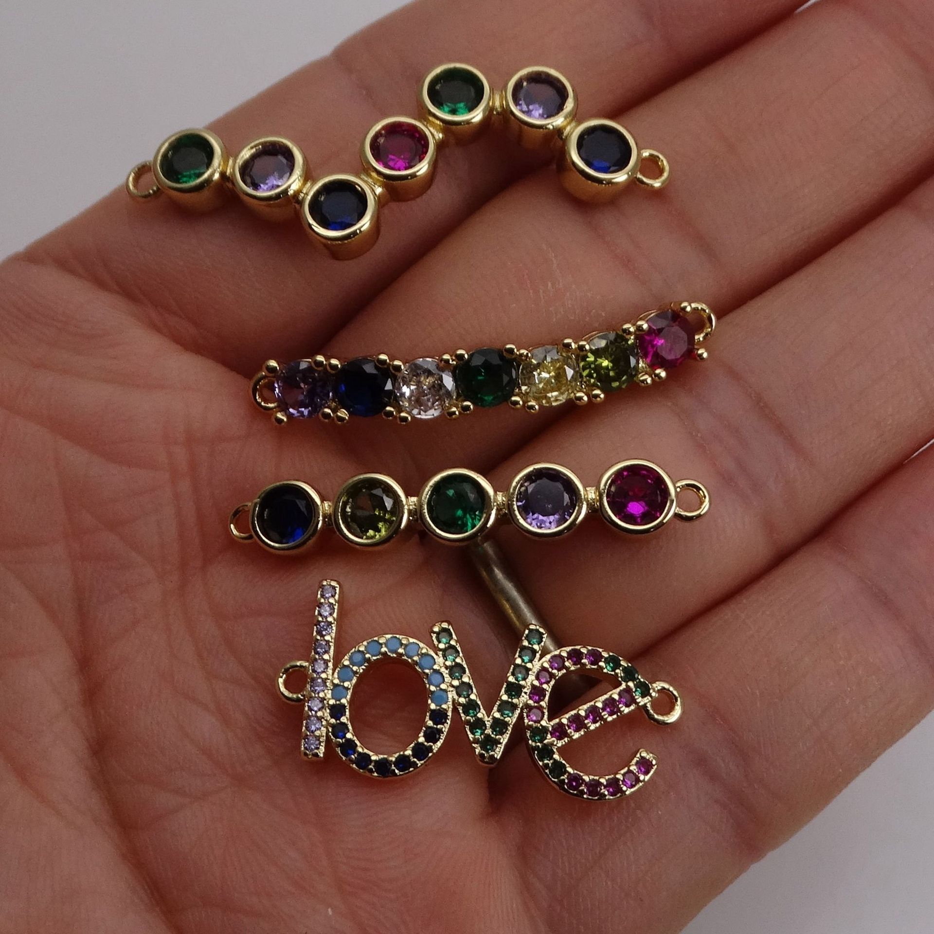 Zircon cubique Micro Pave laiton Connecteur, Placage de couleur d'or, DIY & styles différents pour le choix & pavé de micro zircon, Vendu par PC