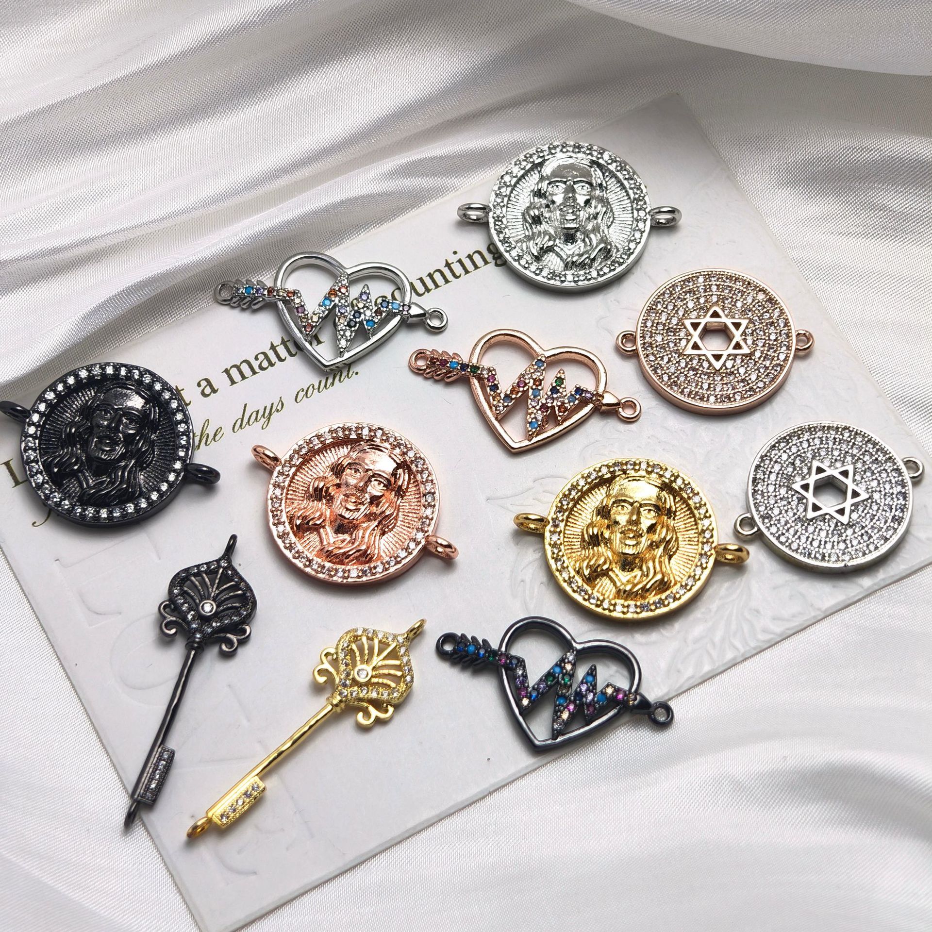 Zircon cubique Micro Pave laiton Connecteur, Placage, DIY & pavé de micro zircon, plus de couleurs à choisir, protéger l'environnement, sans nickel, plomb et cadmium, 110x70x60mm, 3PC/sac, Vendu par sac