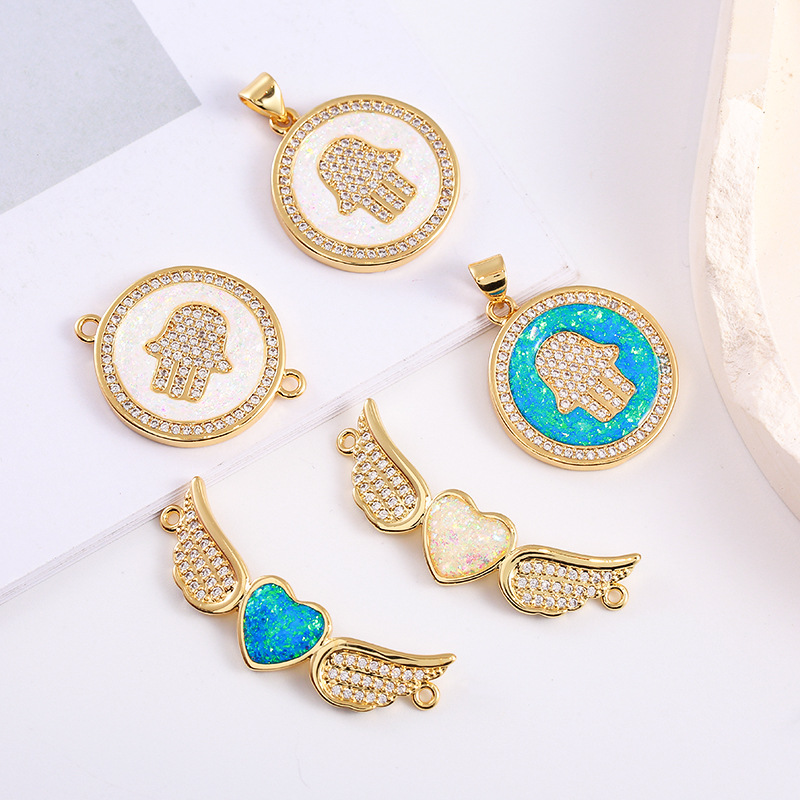 Zircon cubique Micro Pave laiton Connecteur, avec Opale, Placage, DIY & pavé de micro zircon, plus de couleurs à choisir, protéger l'environnement, sans nickel, plomb et cadmium, 10x10x10mm, Vendu par PC