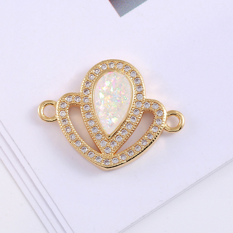 Zircon cubique Micro Pave laiton Connecteur, avec Opale, Placage, DIY & pavé de micro zircon, plus de couleurs à choisir, protéger l'environnement, sans nickel, plomb et cadmium, 10x10x10mm, 5PC/sac, Vendu par sac