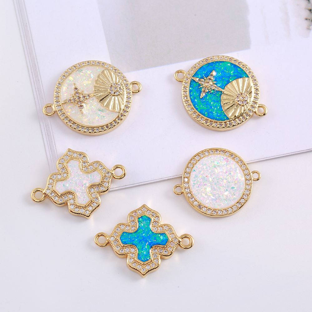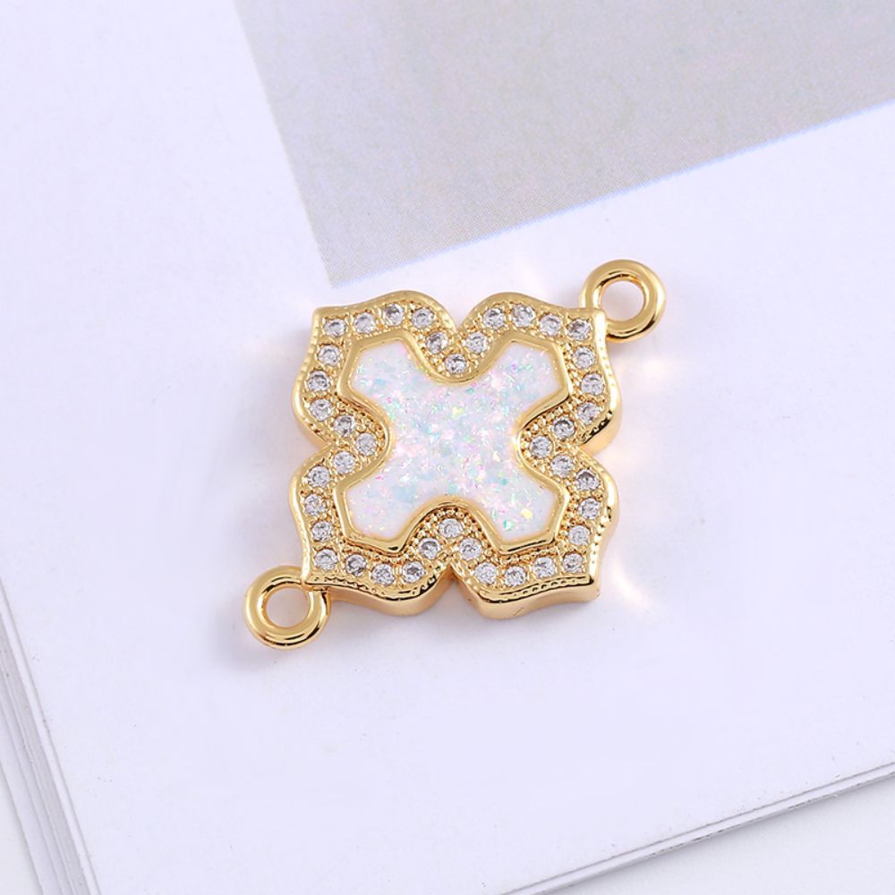 Zircon cubique Micro Pave laiton Connecteur, avec Opale, Placage, DIY & pavé de micro zircon, plus de couleurs à choisir, protéger l'environnement, sans nickel, plomb et cadmium, 10x10x10mm, 5PC/sac, Vendu par sac
