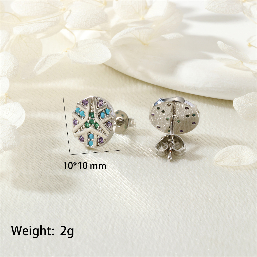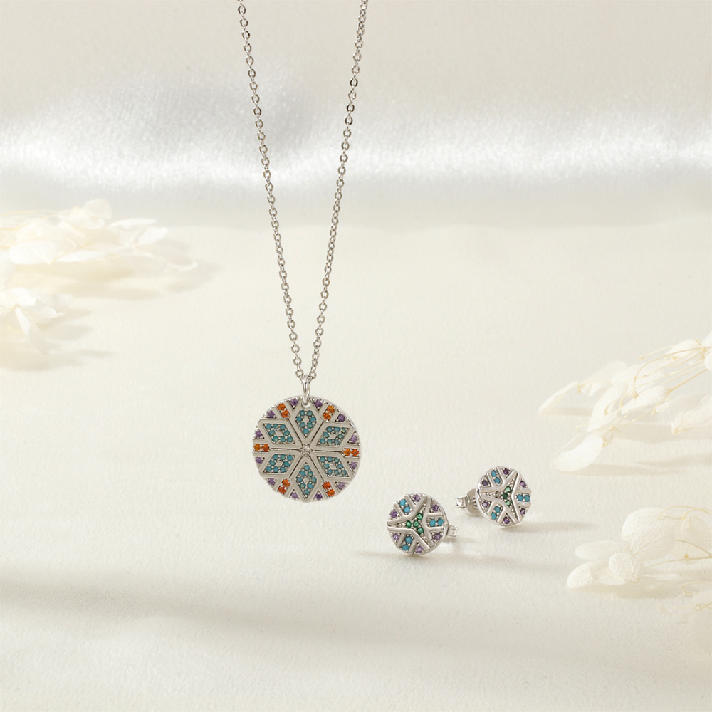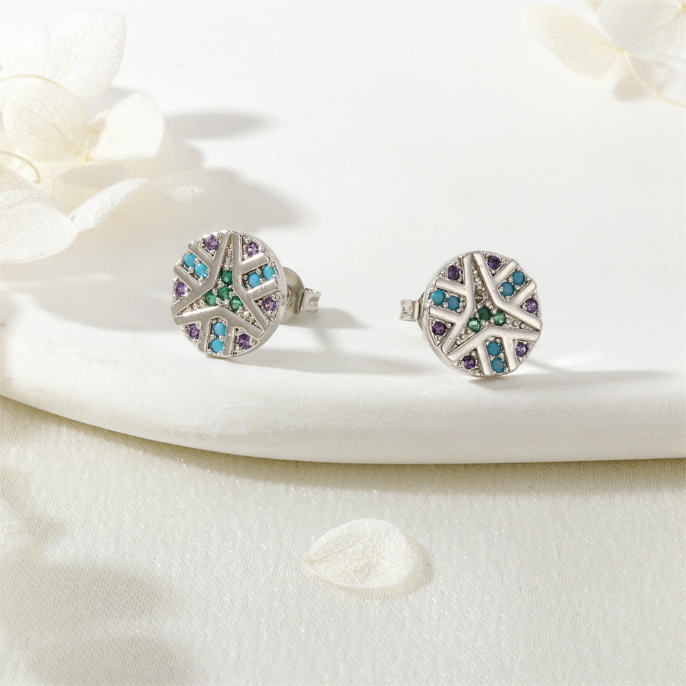 Zircon cubique Micro Pave parures de bijoux en laiton, Boucle d’oreille stud & collier, Rond, Placage de couleur argentée, styles différents pour le choix & pavé de micro zircon & pour femme, plus de couleurs à choisir, protéger l'environnement, sans nickel, plomb et cadmium, Vendu par PC