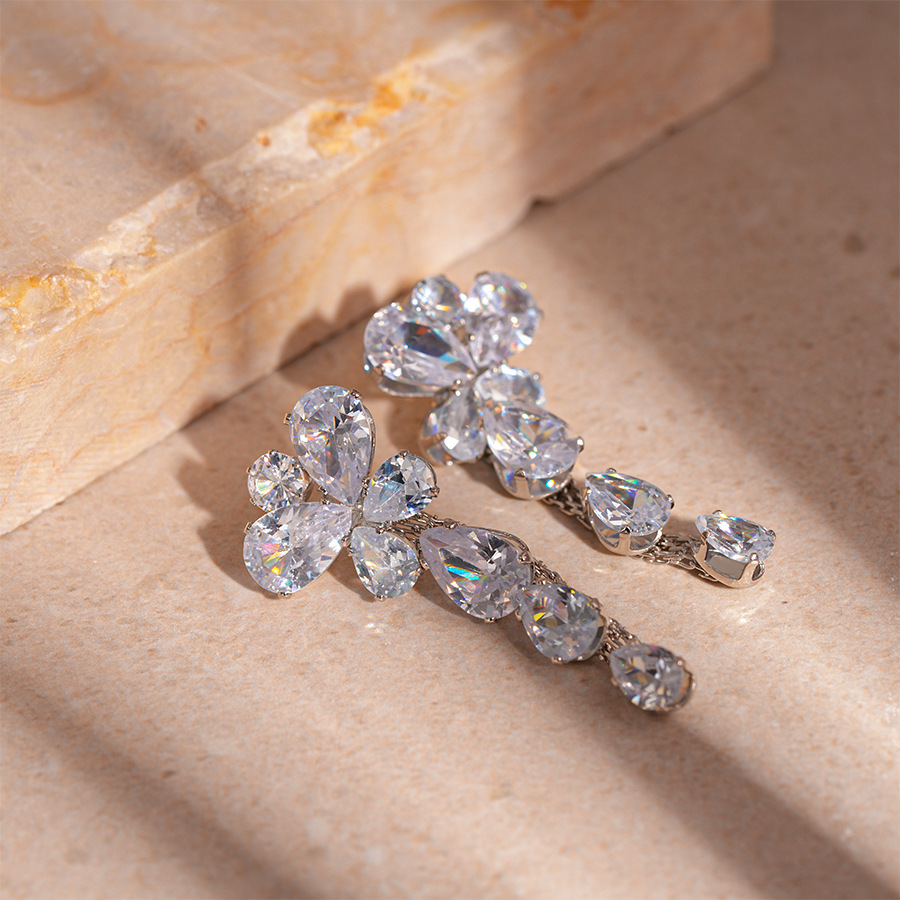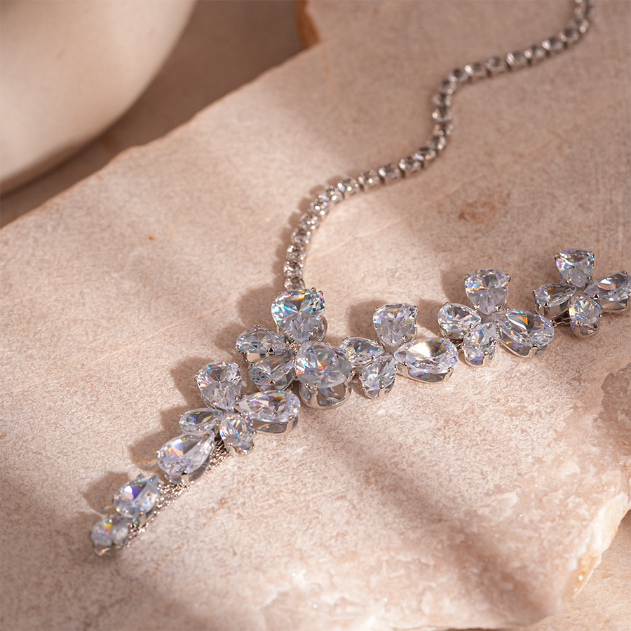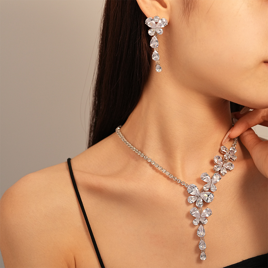 1:Silver needle-silver zircon drop earrings2:Silver zircon water drop necklace