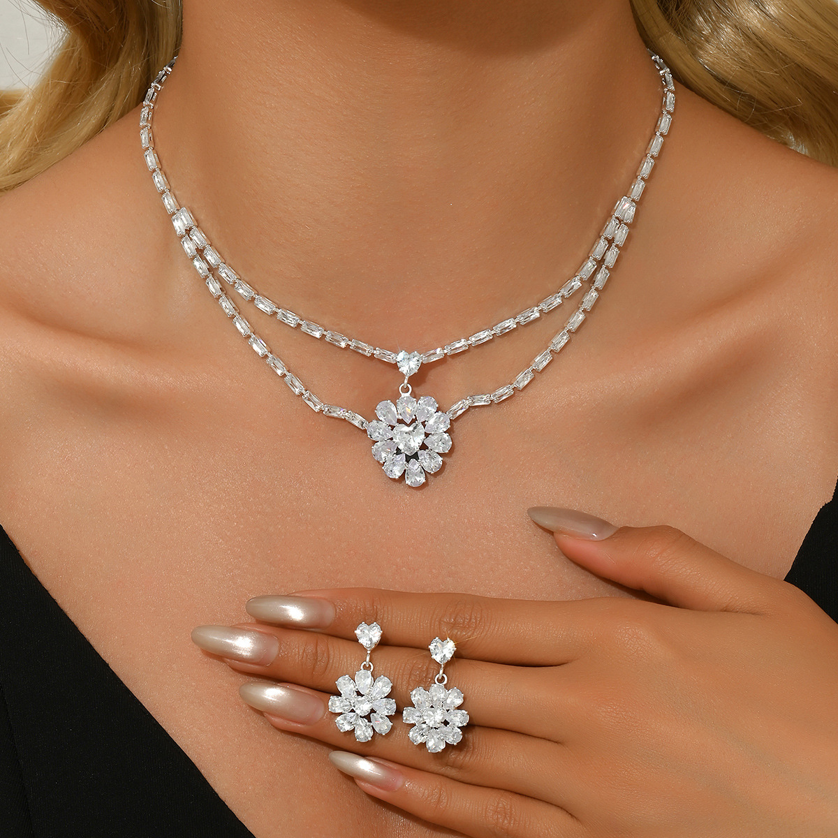 • Effet :2 pièces,bijoux de mode,pavé de micro zircon