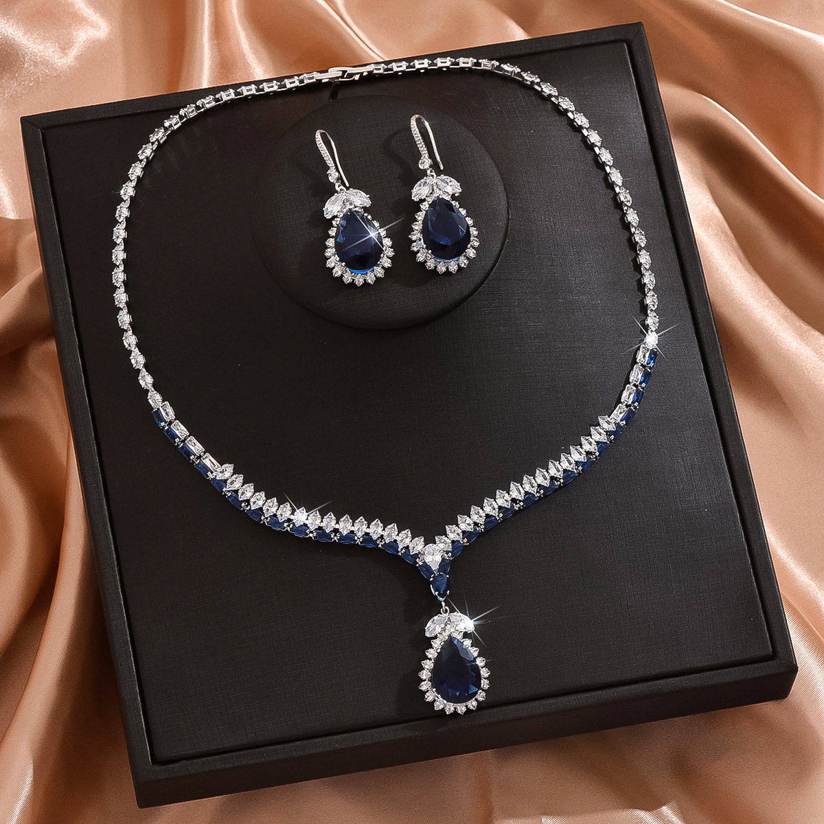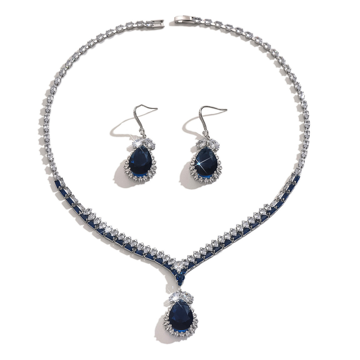 Zircon cubique Micro Pave parures de bijoux en laiton, avec verre, Placage, 2 pièces & bijoux de mode & avec strass, bleu, protéger l'environnement, sans nickel, plomb et cadmium, Vendu par fixé