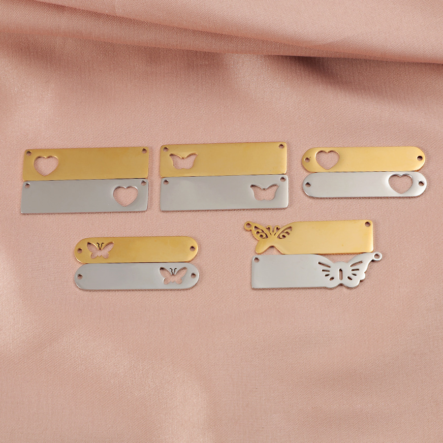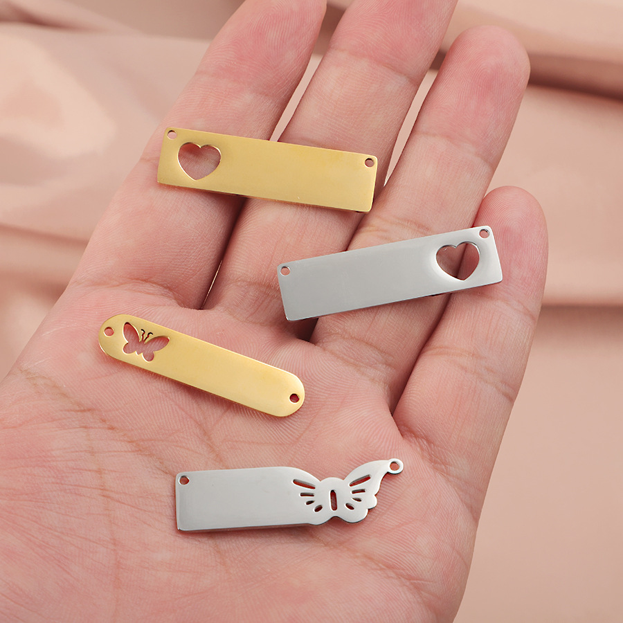 accessoire d'étiquette en inox , Acier inoxydable 304, Placage de couleur d'or, DIY & double trou & creux, plus de couleurs à choisir, Vendu par PC