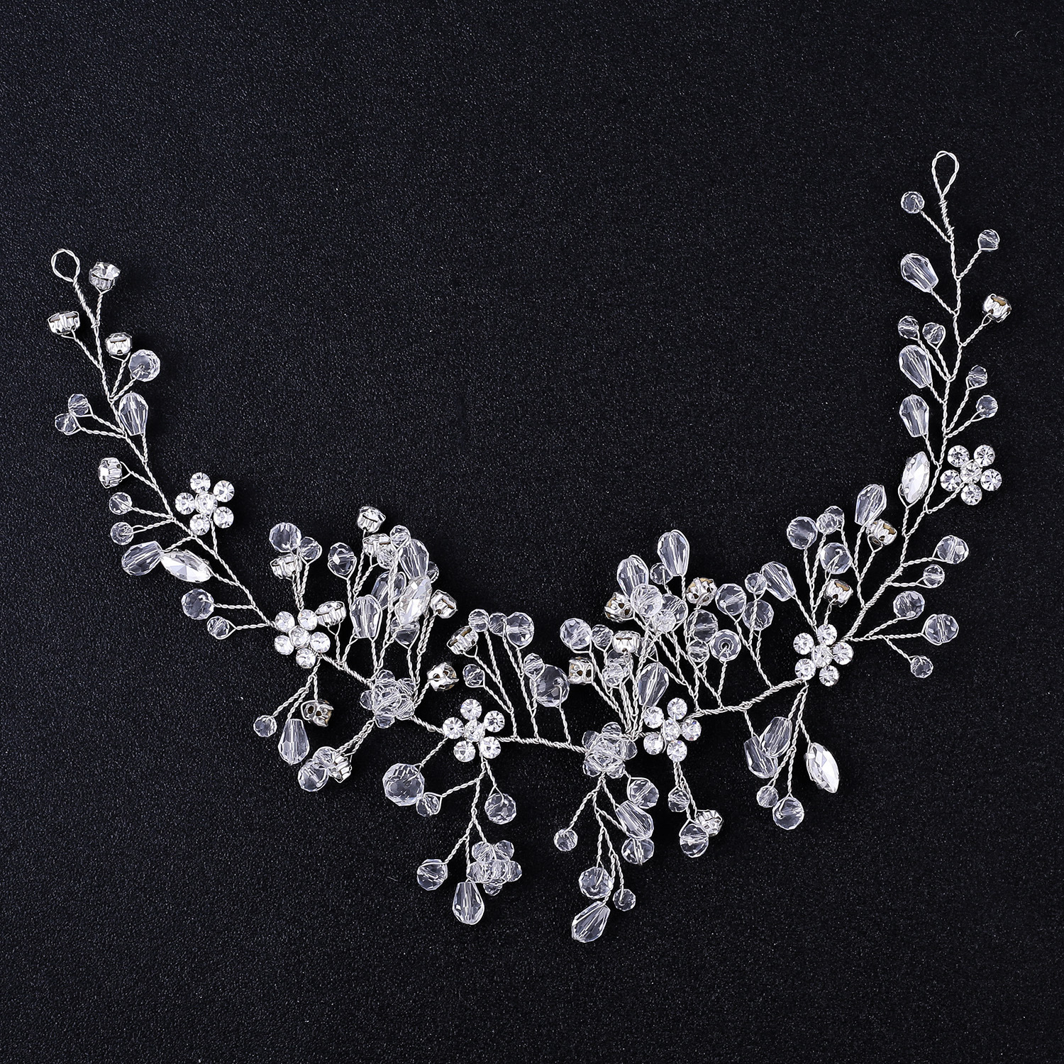 alliage de zinc Bande de cheveux, avec fil en laiton & cristal & strass, fait à la main, bijoux de mode & pour mariée, argent, Vendu par PC