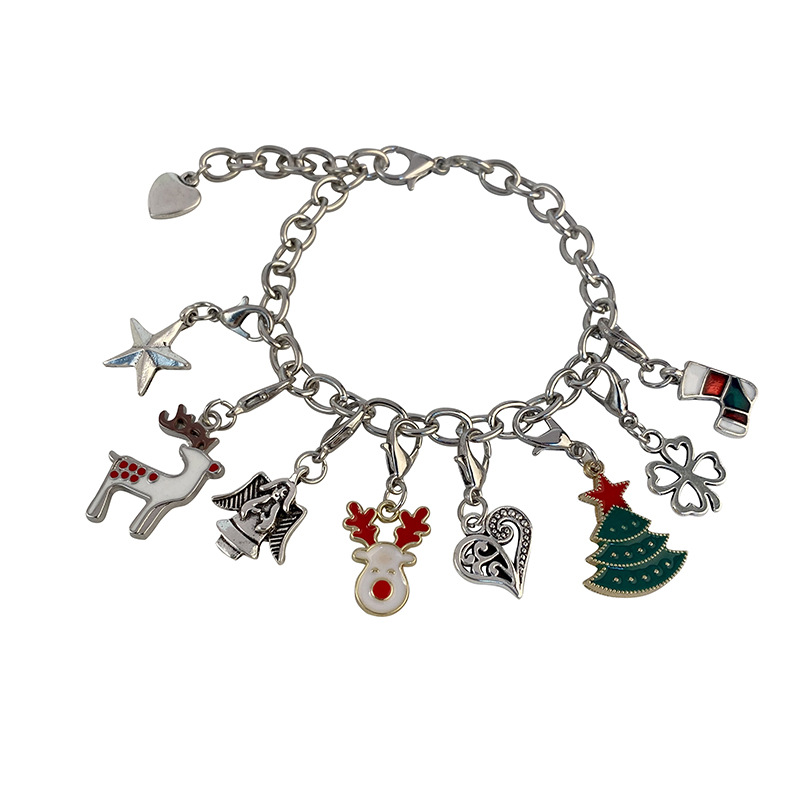 alliage de zinc Enfants bricolage cordes Perles Set, Placage, Conception de Noël & émail, Longueur Environ 6-8 pouce, Vendu par fixé