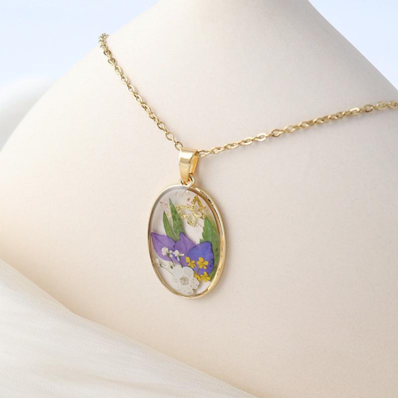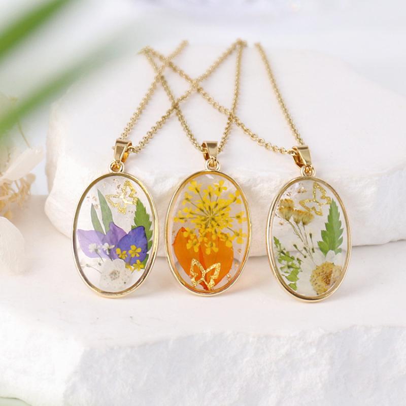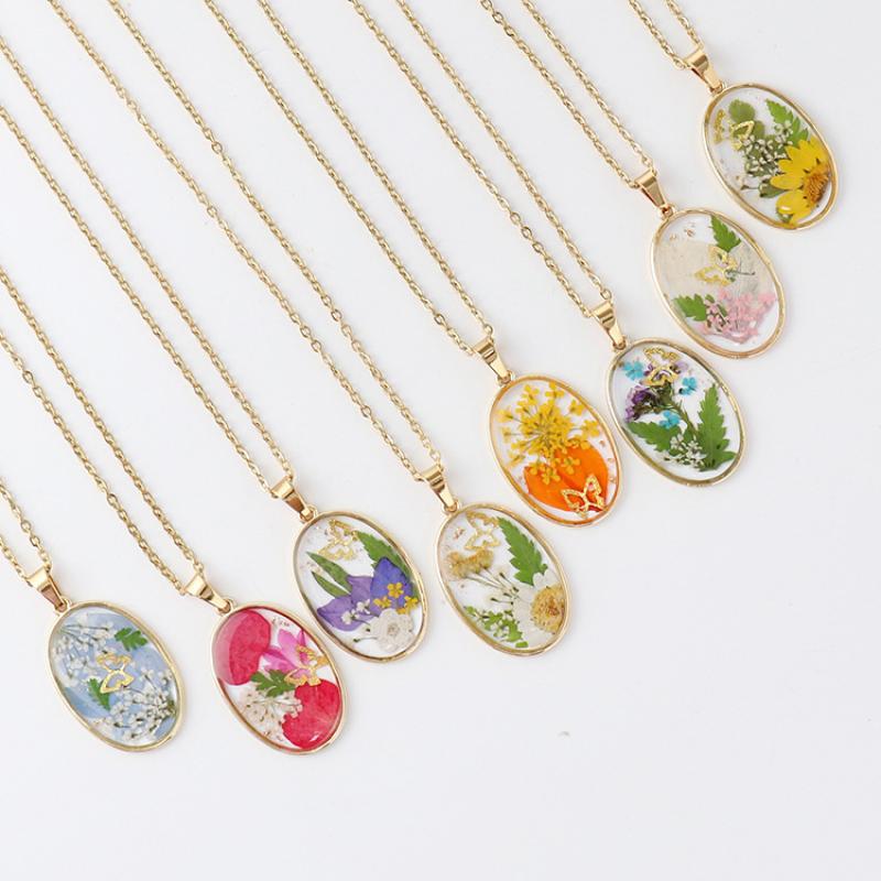 alliage de zinc collier, avec Fleurs séchées & résine, goutté d'époxy, bijoux de mode & modèles différents pour le choix & pour femme, Longueur Environ 45 cm, 6PC/sac, Vendu par sac