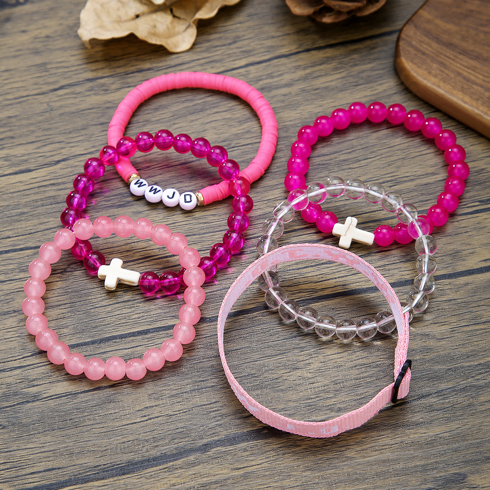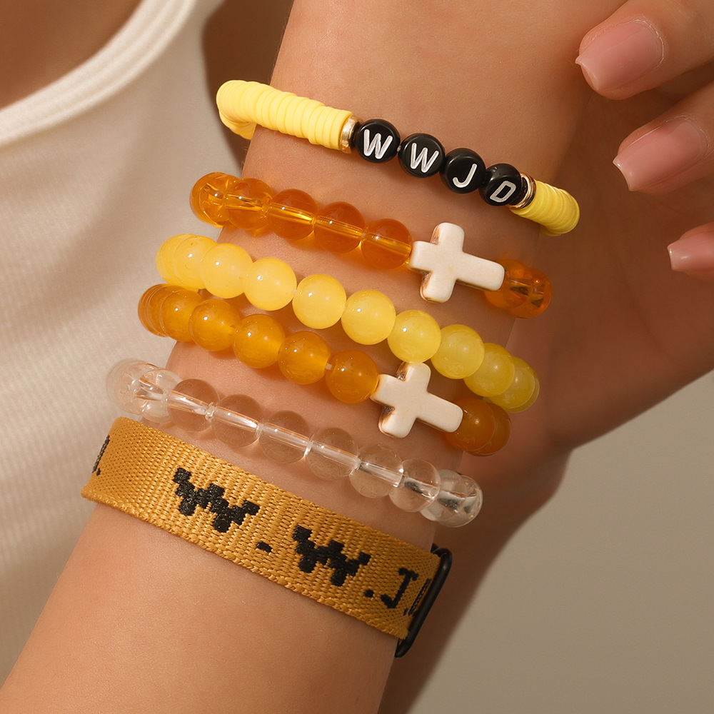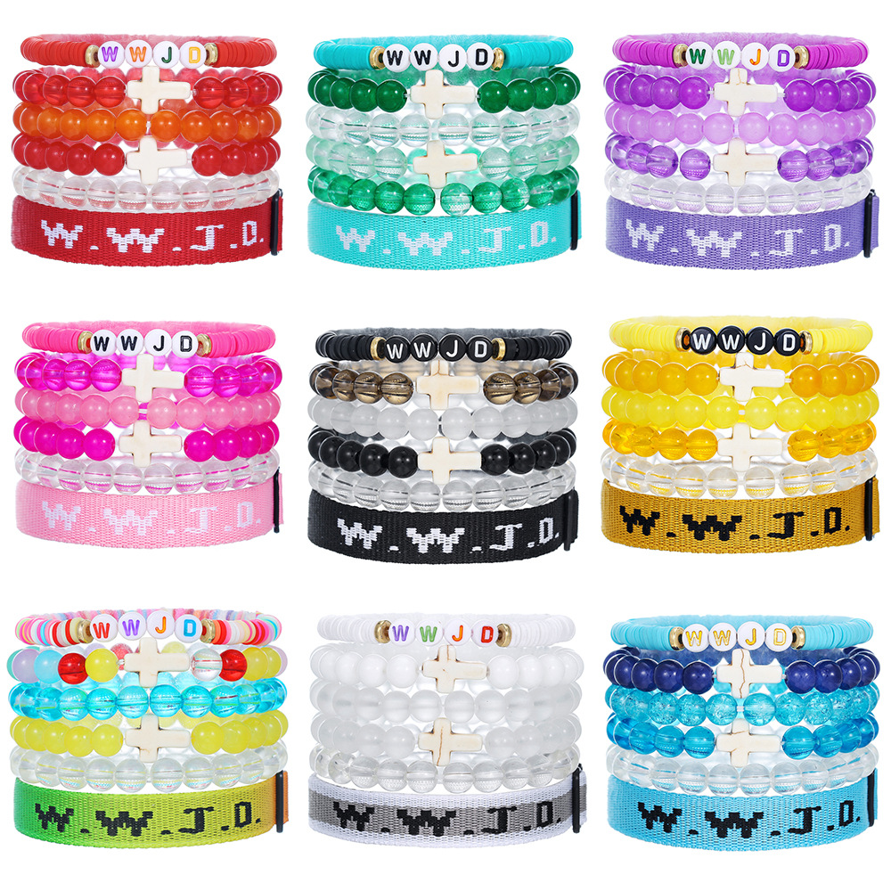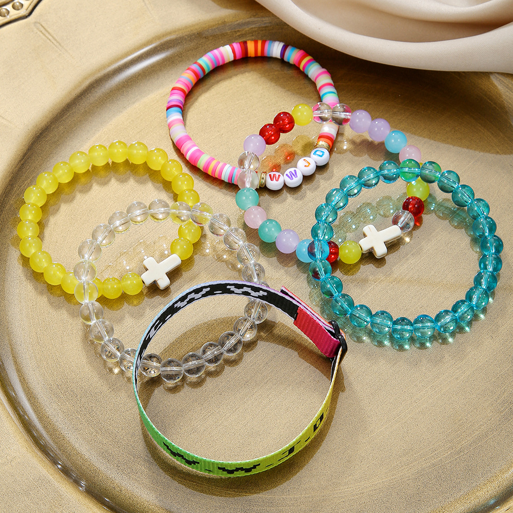 argile de polymère Set de bracelet, avec Des billes de verre & Fibre de polyester, fait à la main, bijoux de mode & unisexe & styles différents pour le choix, plus de couleurs à choisir, Vendu par fixé