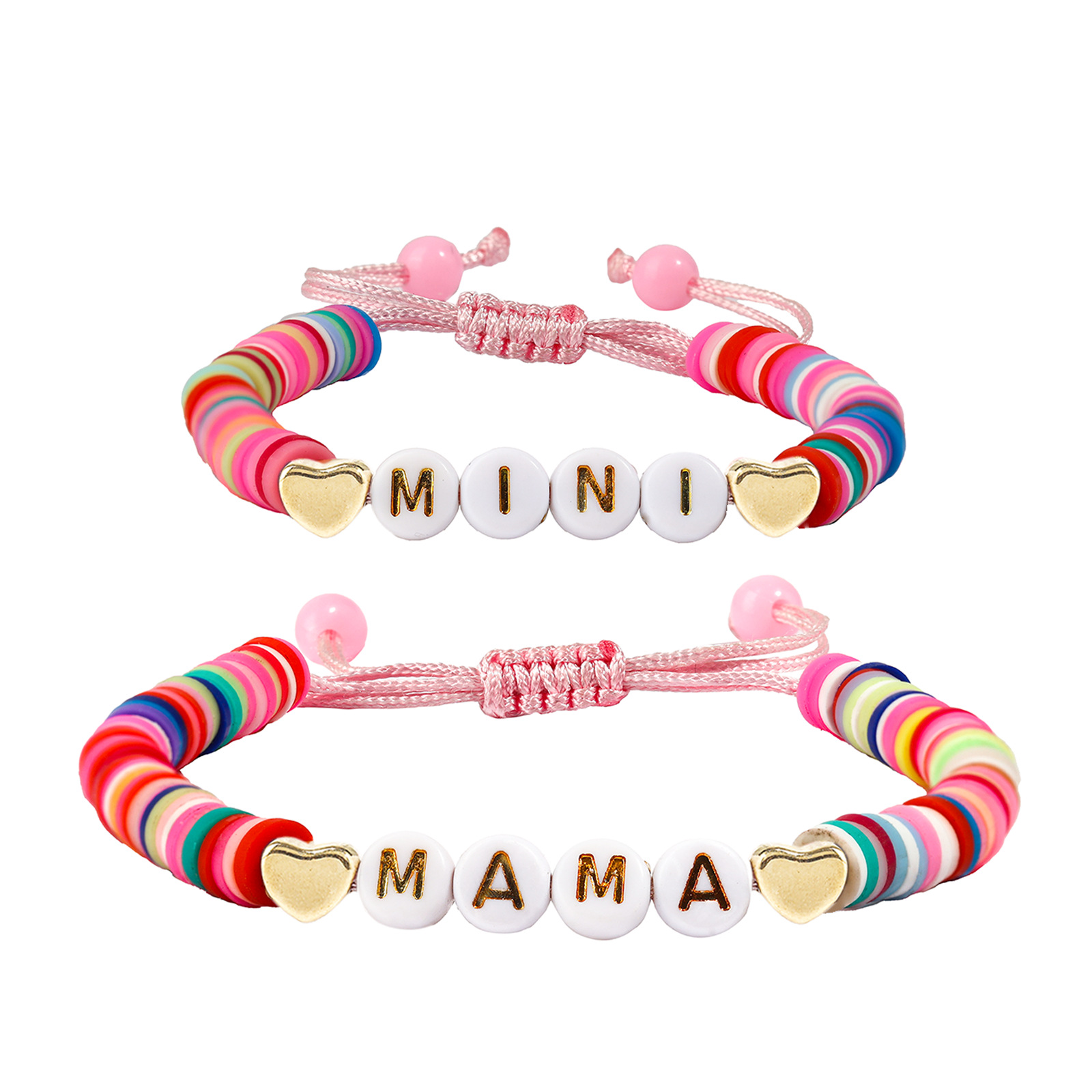 argile de polymère Set de bracelet, avec cordon de polyester & alliage de zinc & Acrylique, fait à la main, avec le motif de lettre & pour femme, Longueur Environ 5-10 pouce, Vendu par fixé