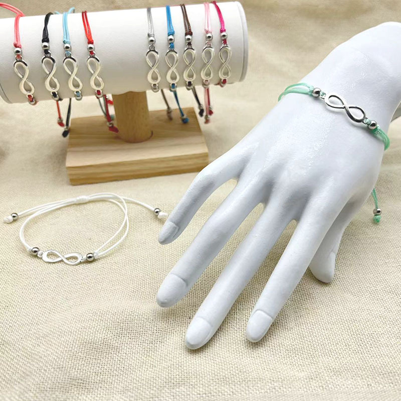 cordon de polyester Set de bracelet, avec alliage de zinc, Infini, fait à la main, 12 pièces & unisexe & réglable, couleurs mélangées, Longueur Environ 6-10 pouce, Vendu par fixé
