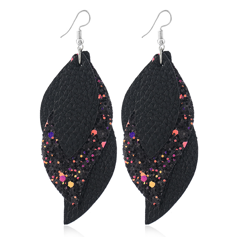 cuir PU Boucle d'oreille goutte, avec Sequin en plastique & alliage de zinc, larme, bijoux de mode & pour femme, plus de couleurs à choisir, 30x80mm, Vendu par paire
