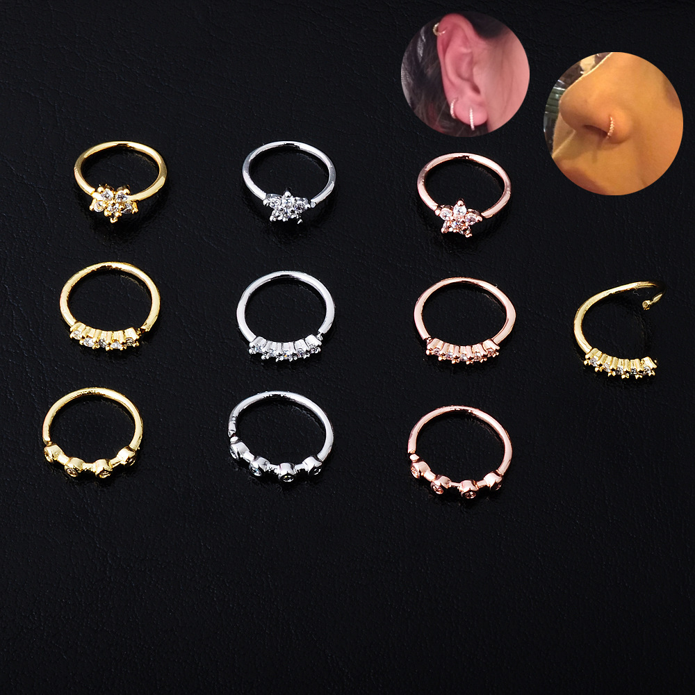 laiton Bijoux de Piercing de Nez, Placage, unisexe & styles différents pour le choix & pavé de micro zircon, Vendu par PC