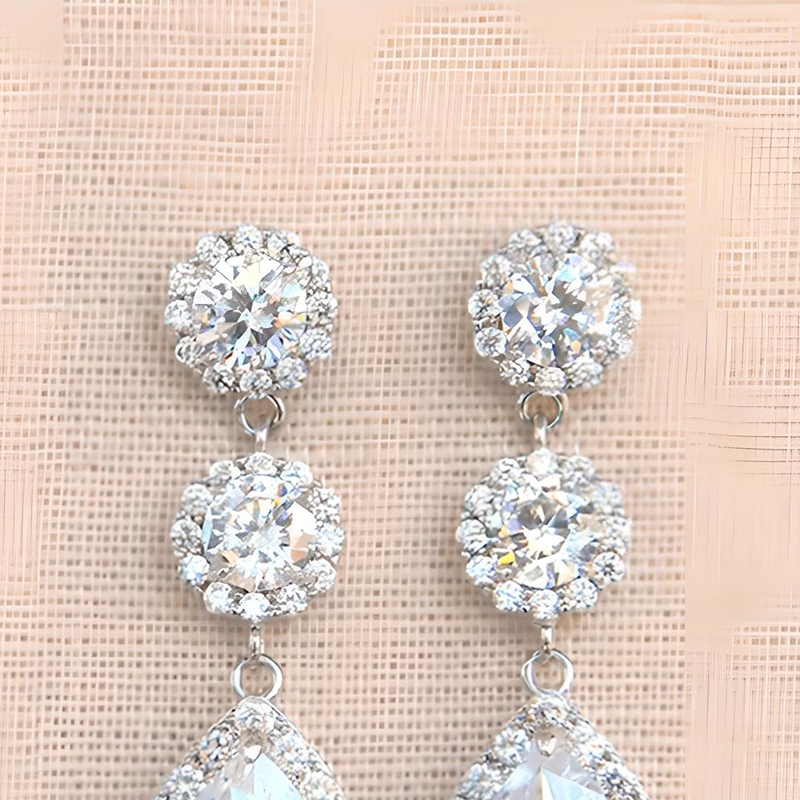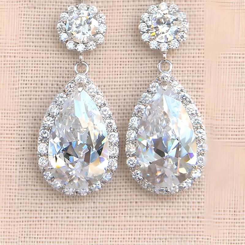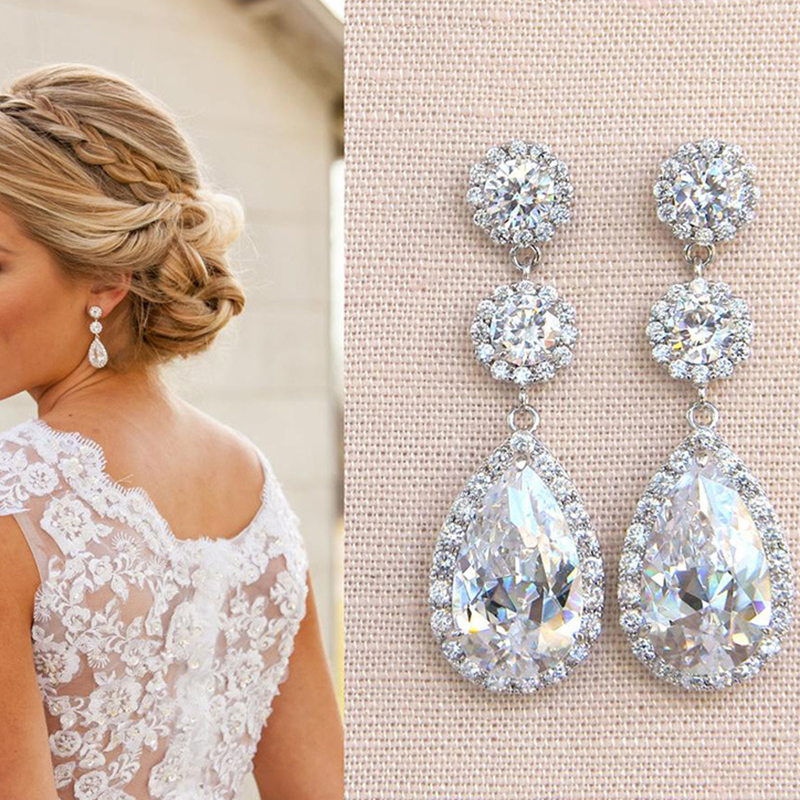 laiton Boucle d'oreille goutte, larme, Plaqué de platine, pavé de micro zircon & pour femme, 32mm, Vendu par paire