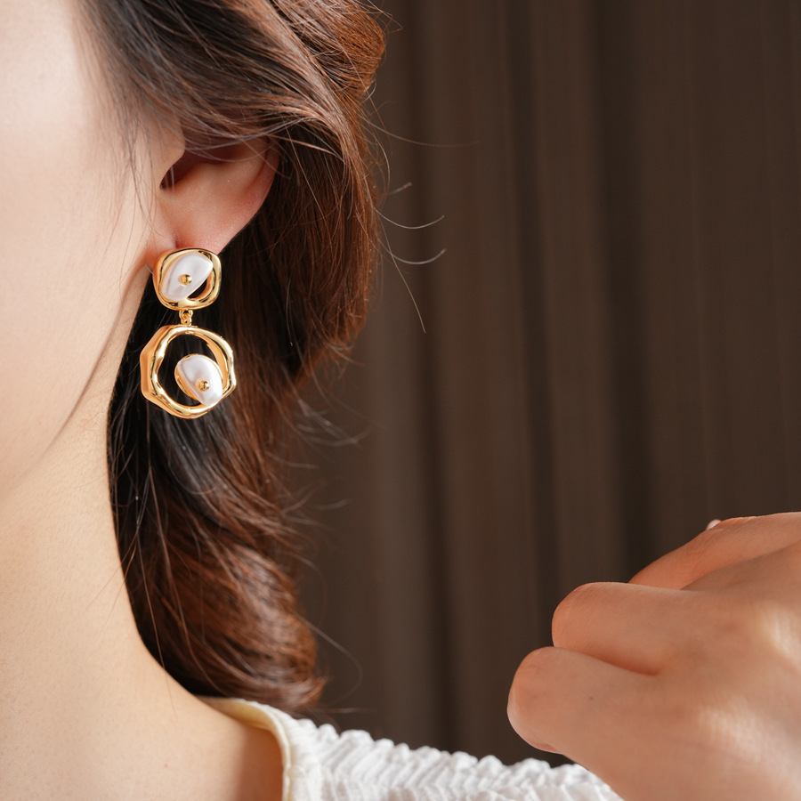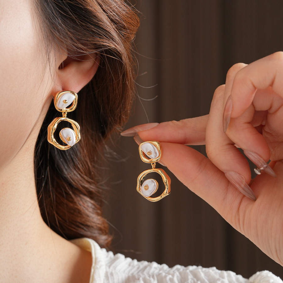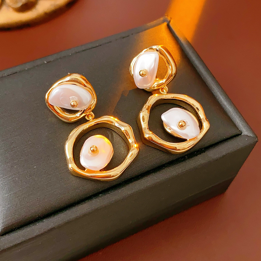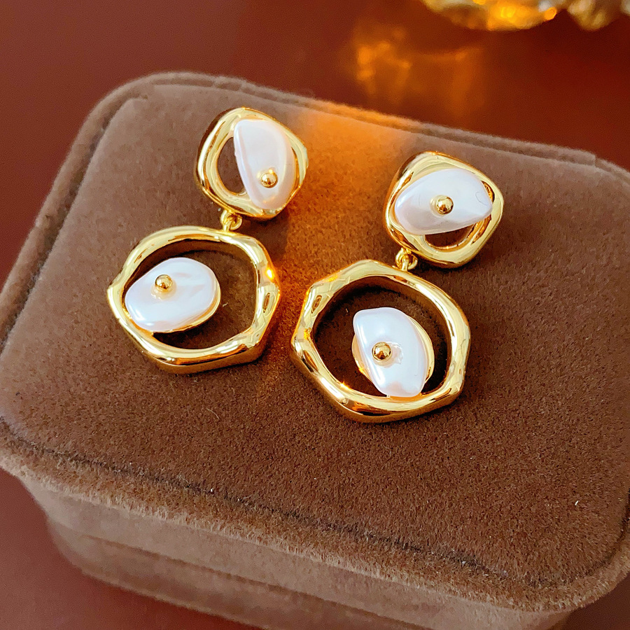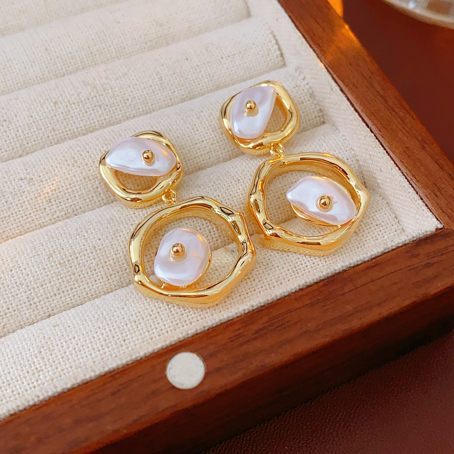 laiton Boucle d'oreille goutte, avec perle de plastique, Motif géométrique, Placage de couleur d'or, pour femme & creux, 20x32mm, Vendu par paire