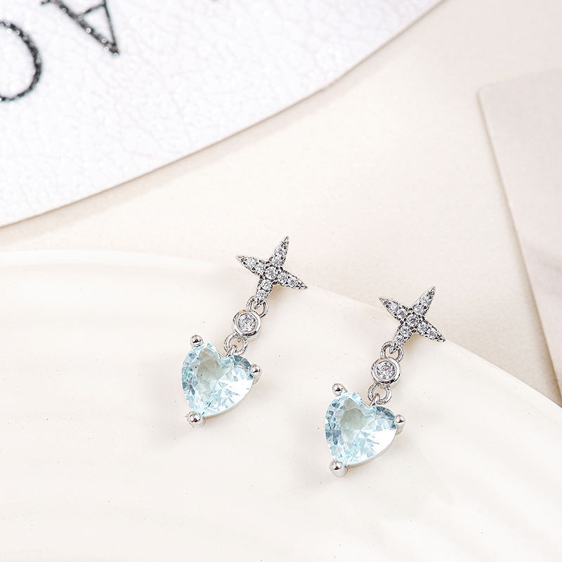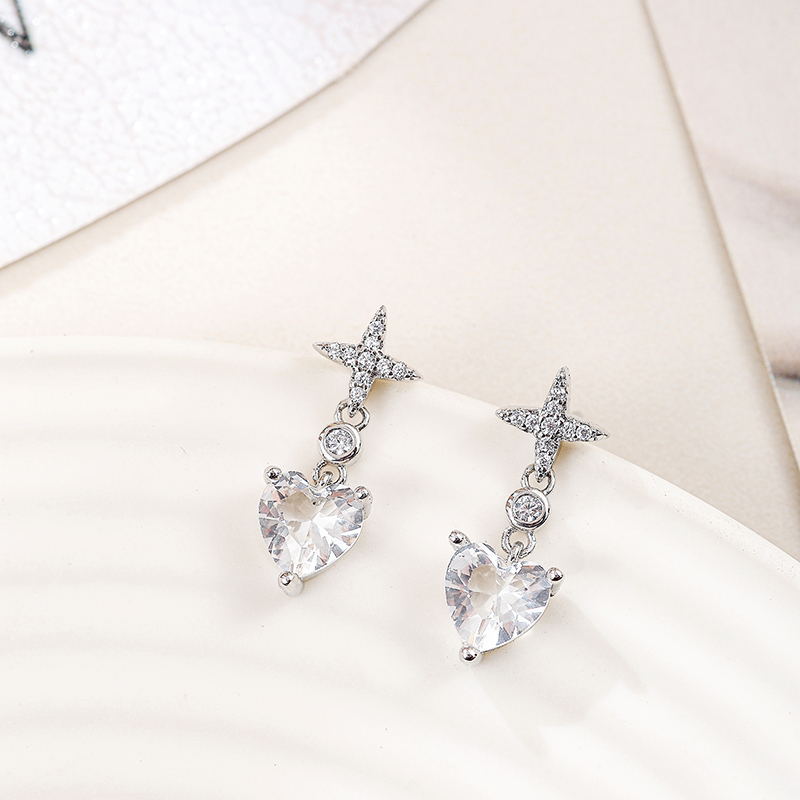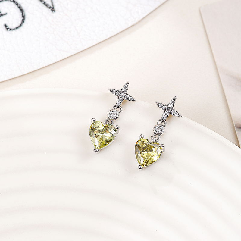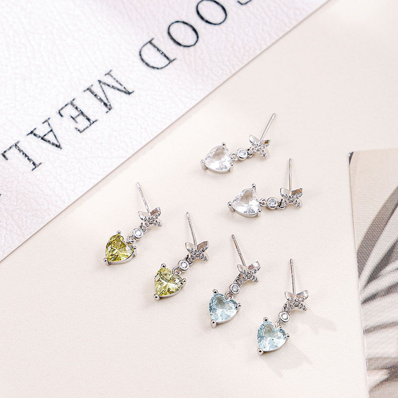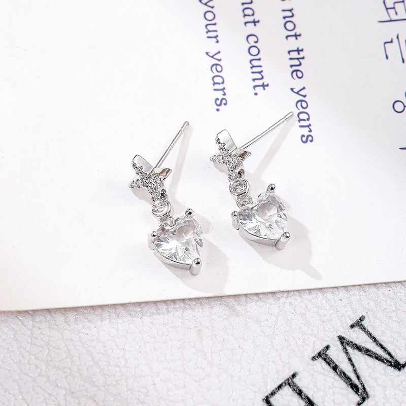 laiton Boucle d'oreille goutte, coeur, Plaqué de platine, pavé de micro zircon & pour femme, plus de couleurs à choisir, earring length 25-30mm, Vendu par paire