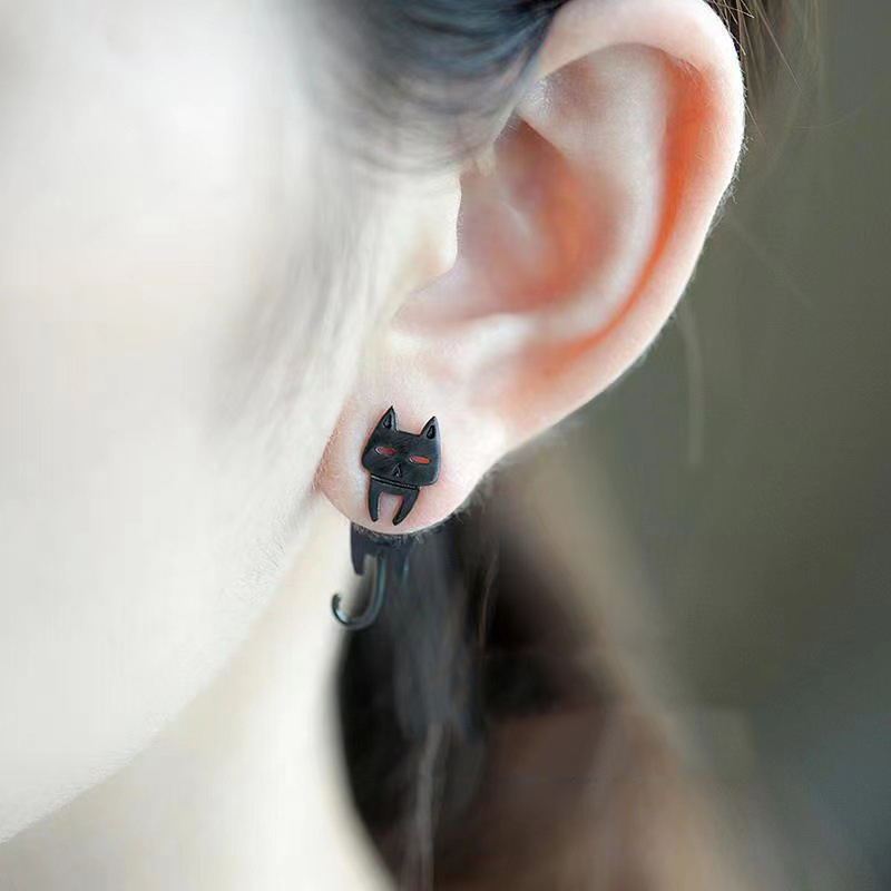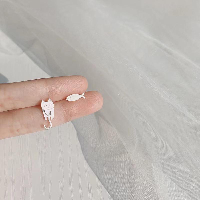 laiton Boucles d’oreilles asymétriques stud, Chat et poissons, Placage, bijoux de mode & pour femme, plus de couleurs à choisir, earring length 5-20mm, Vendu par paire