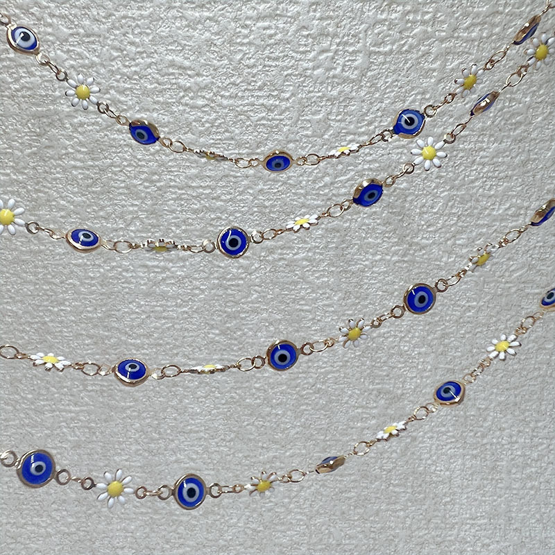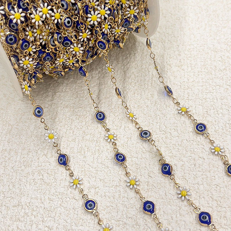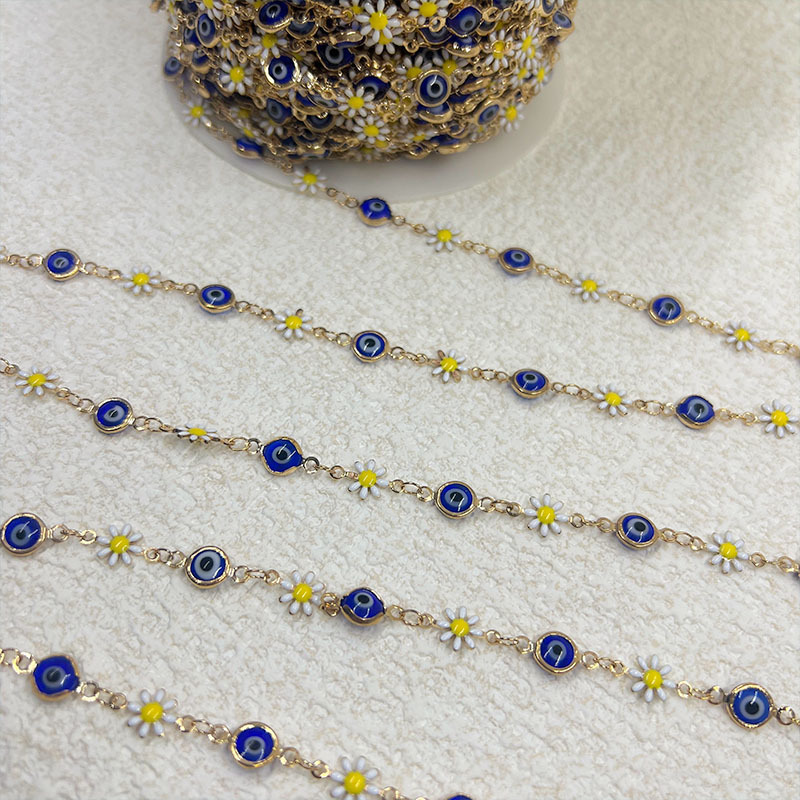 laiton Chaîne, Placage de couleur d'or, DIY & motif de mauvais œil & émail, protéger l'environnement, sans nickel, plomb et cadmium, Longueur 1 m, Vendu par PC