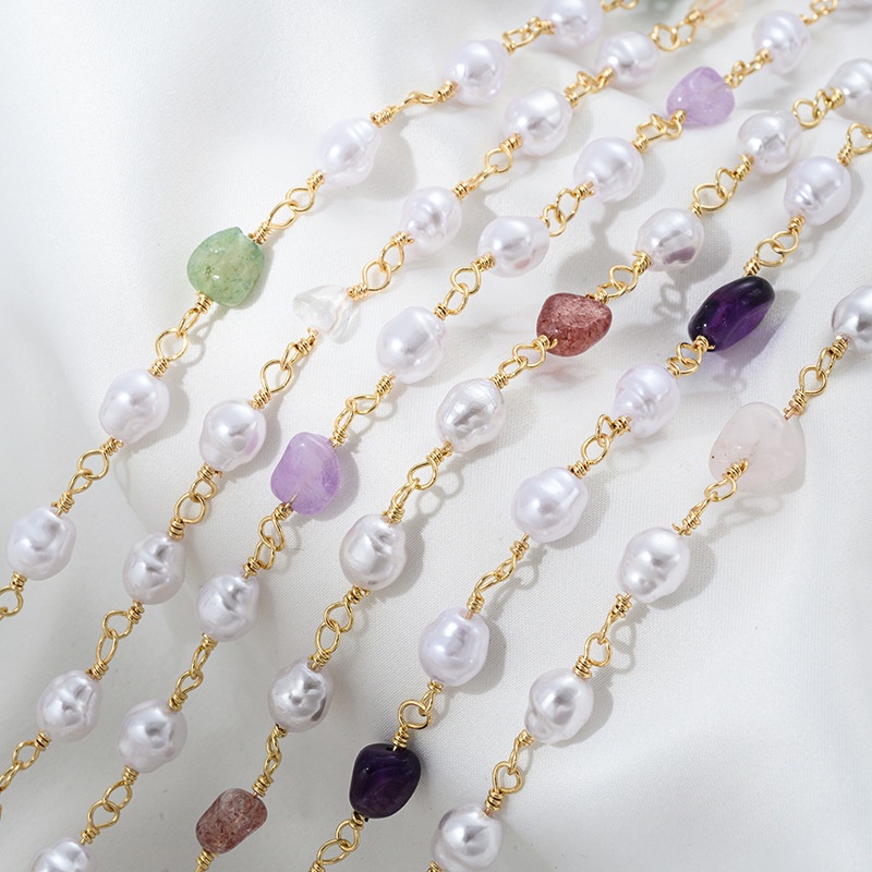1:Shallow amethyst imitation pearl chain half meter2:Strawberry crystal imitation pearl chain half meter3:Deep amethyst imitation pearl chain half meter4:Powder crystal imitation pearl chain half meter5:Citrine imitation pearl chain half meter6:Green strawberry imitation pearl chain half meter