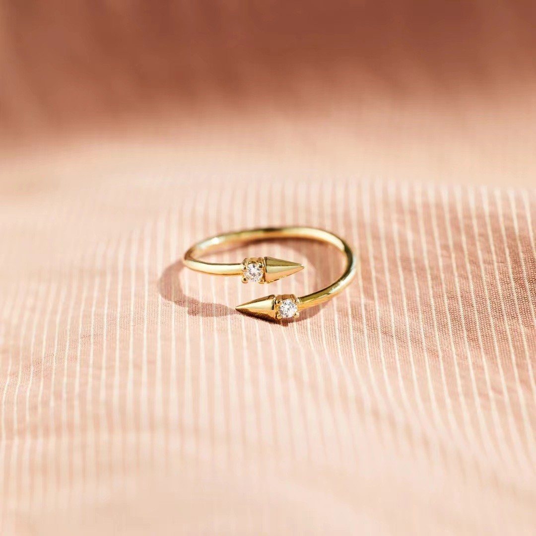 laiton Cuff Bague, pointe de flèche, Placage de couleur d'or, pavé de micro zircon & pour femme, Vendu par PC