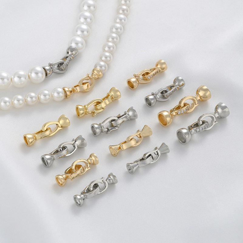 laiton Fermoir, Placage, 2 pièces & DIY & styles différents pour le choix & pavé de micro zircon, plus de couleurs à choisir, A:13x6.5mm;B:13x6.5mm;C:13.5x6mm;D:12x5.5mm;E:12.5x6.5;F:15.5x7.5mmu3002, Vendu par fixé