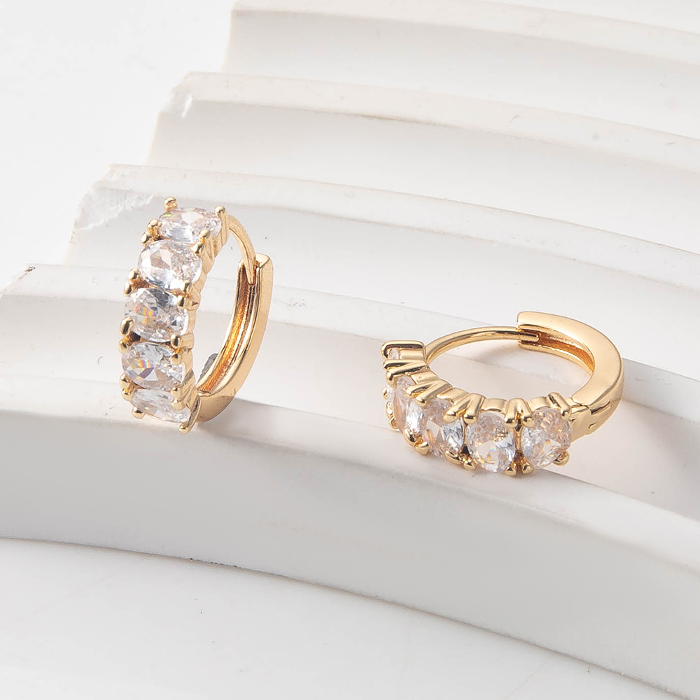 Boucles d'oreilles en laiton zircon cubique pavent, Placage, trois pièces & pour femme, doré, Vendu par fixé