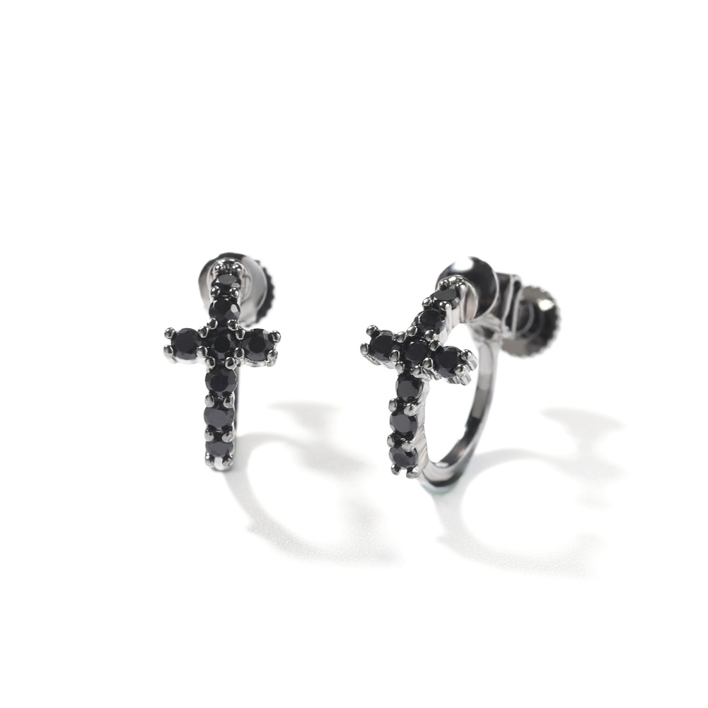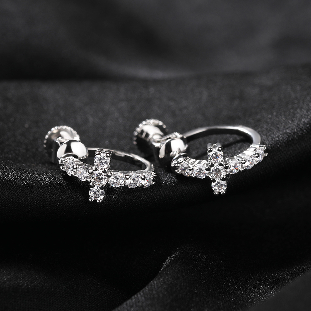 laiton Huggie Anneau d'oreille, croix, Placage, pavé de micro zircon & pour homme, plus de couleurs à choisir, Vendu par paire