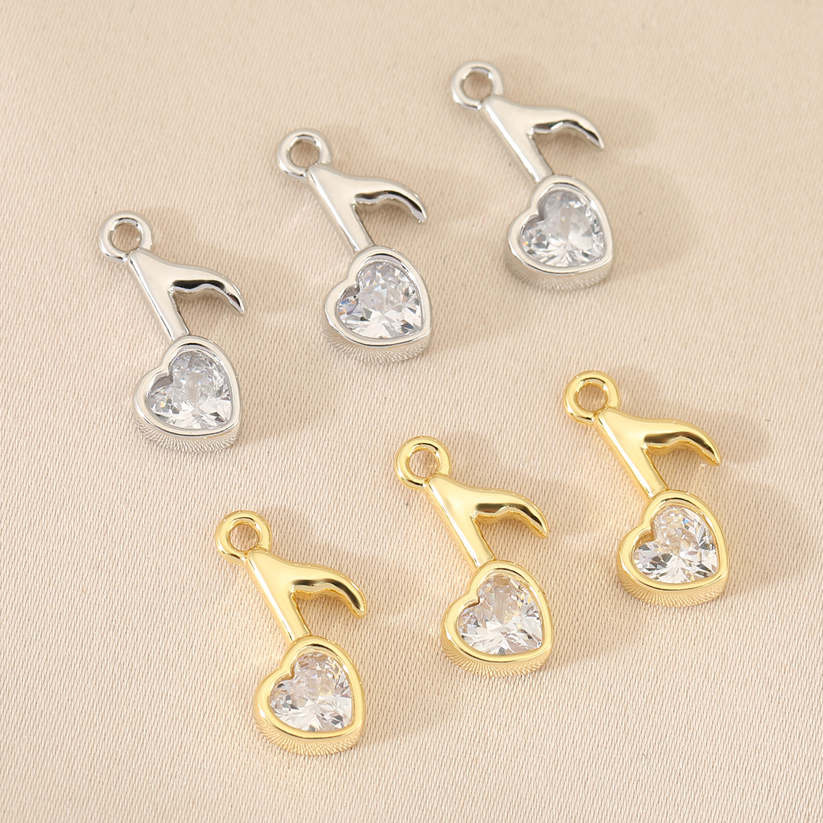 laiton Pendentif, coeur, Placage, DIY & pavé de micro zircon, plus de couleurs à choisir, protéger l'environnement, sans nickel, plomb et cadmium, 10PC/sac, Vendu par sac