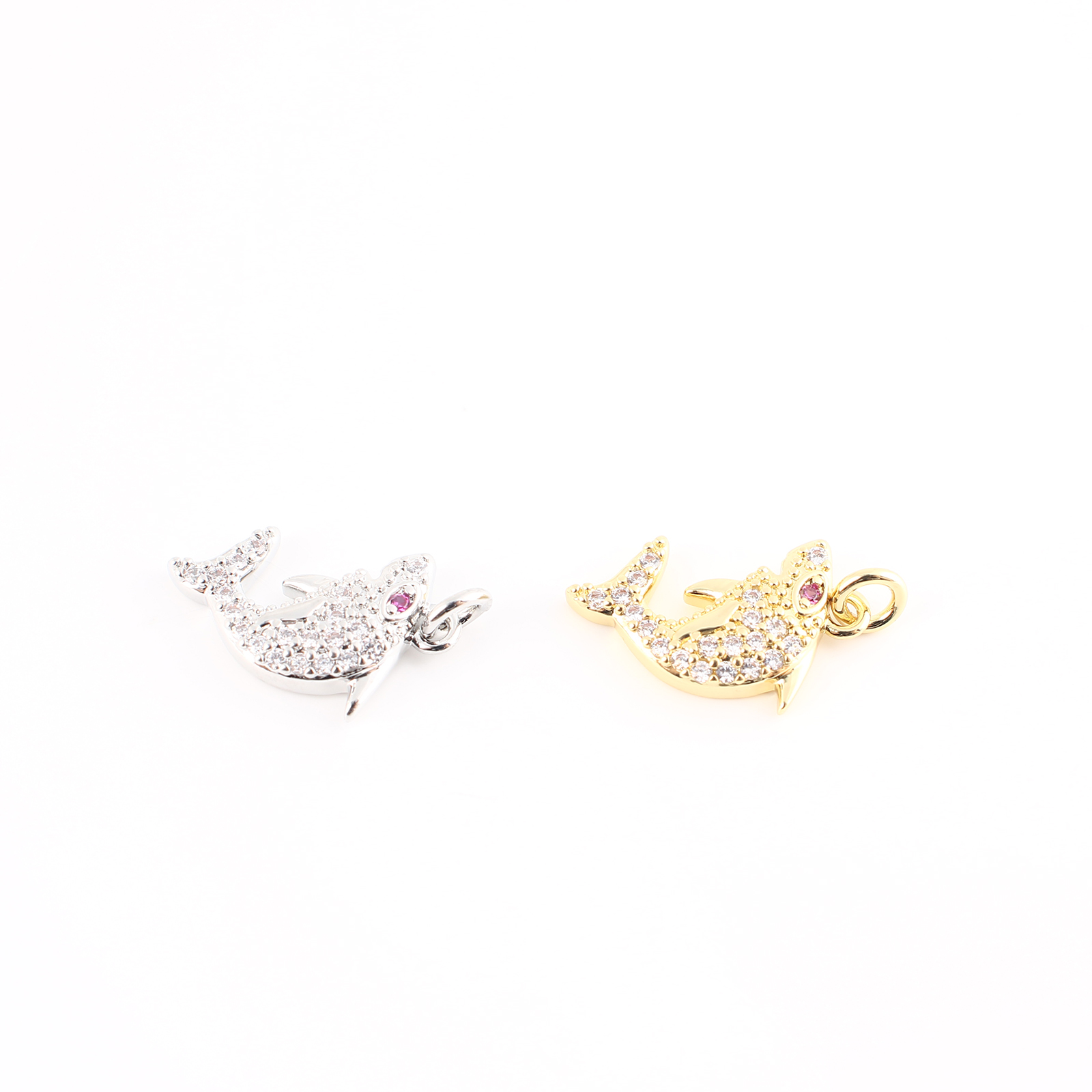 laiton Pendentif, Requin, DIY & pavé de micro zircon, plus de couleurs à choisir, 15x10x3mm, Vendu par PC