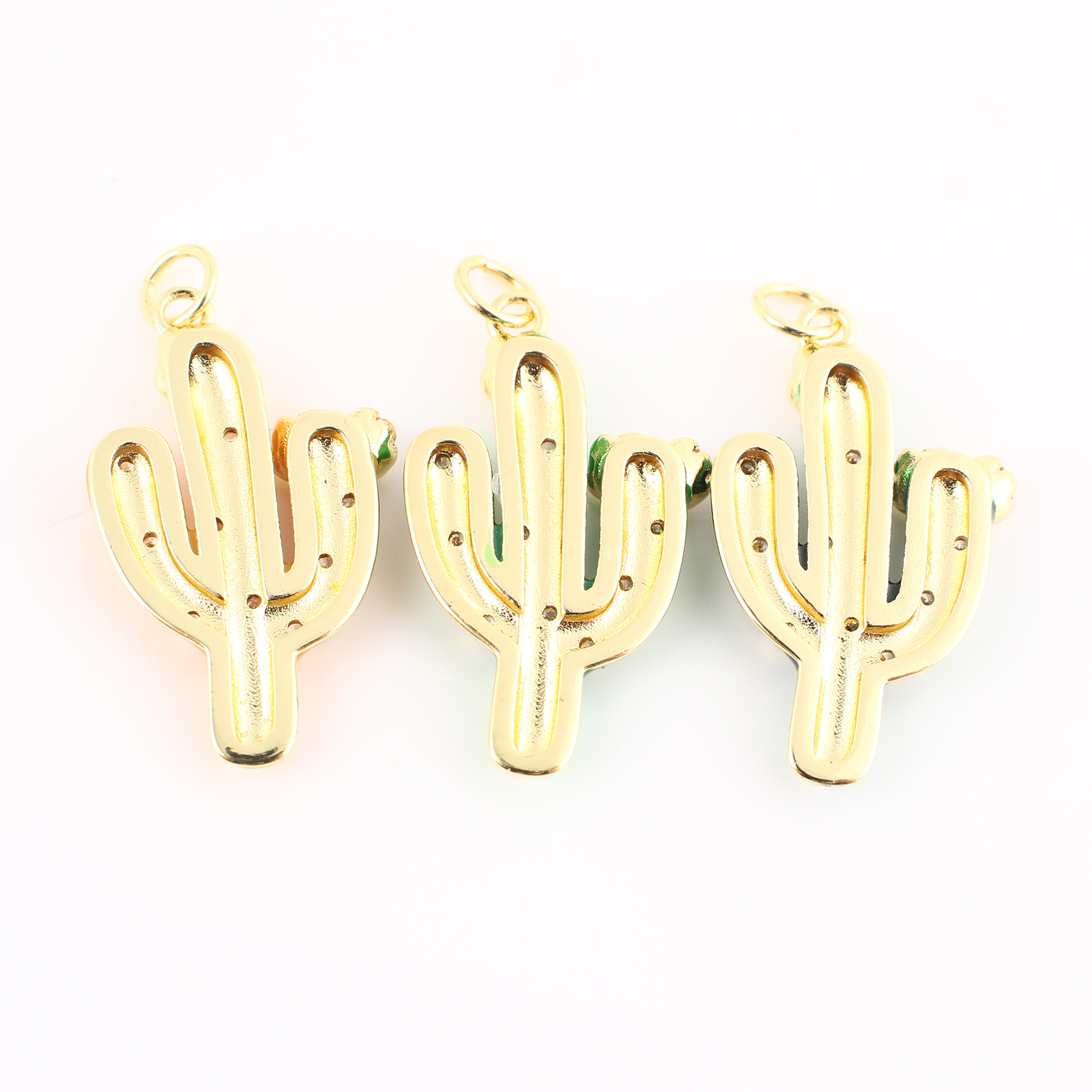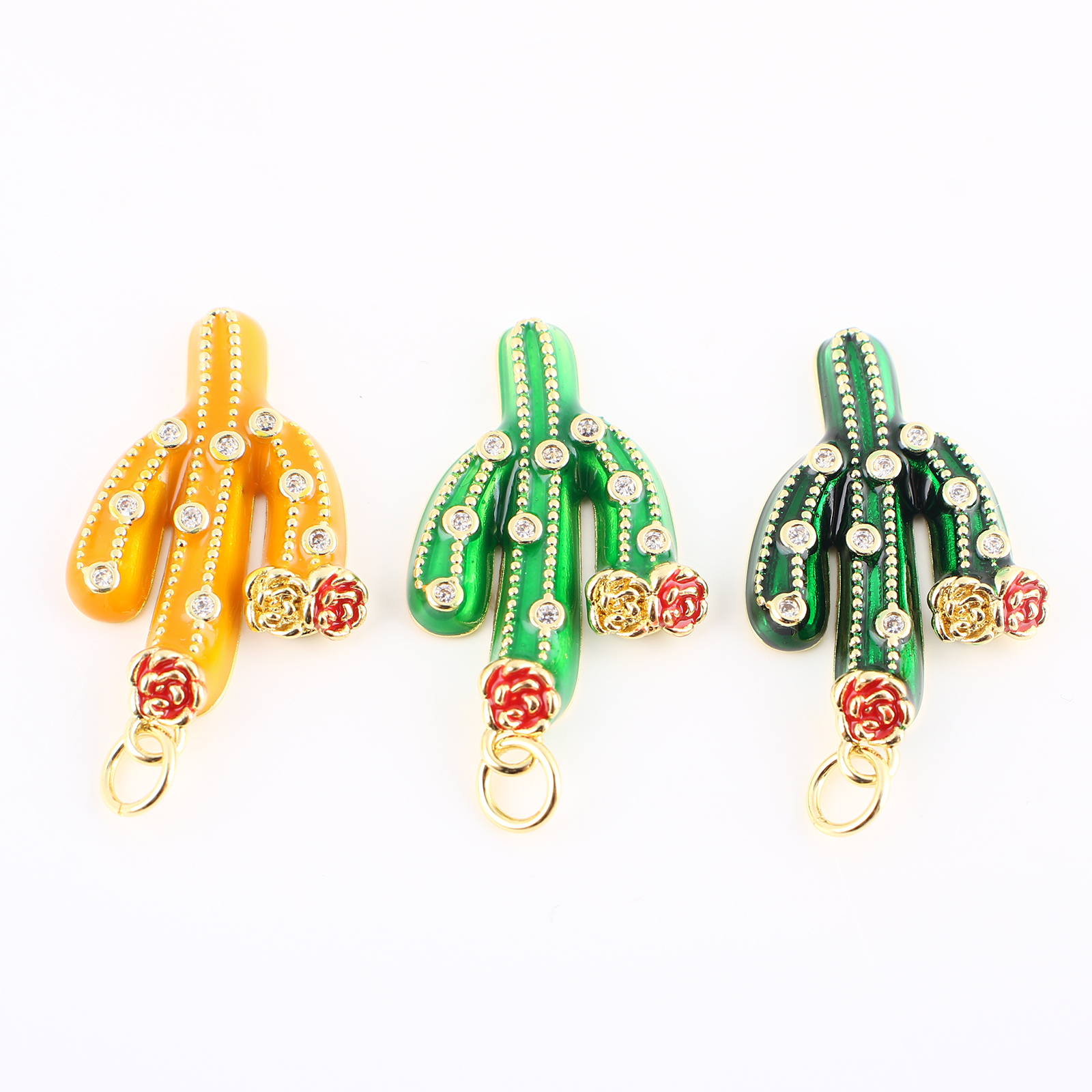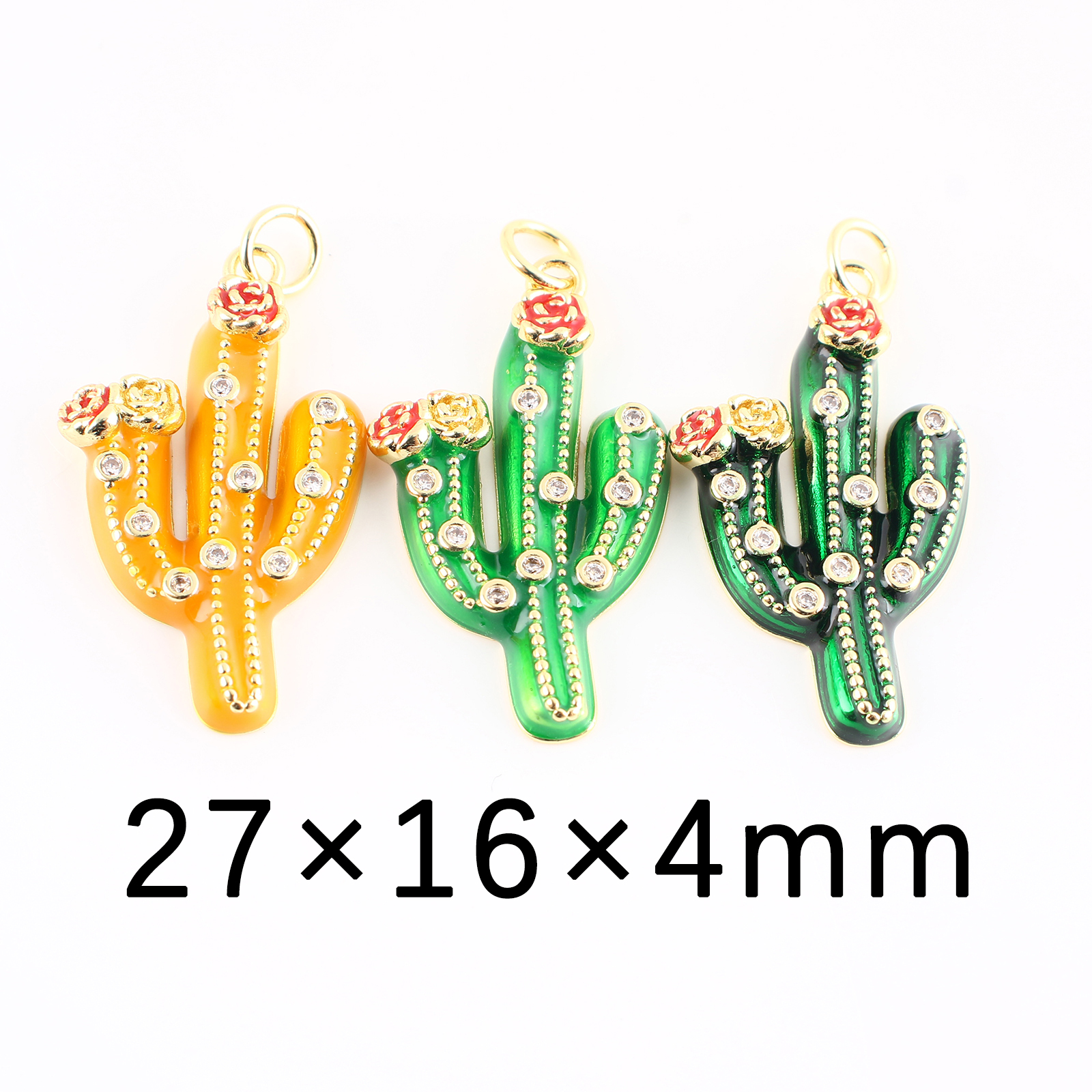 laiton Pendentif, Opuntia Stricta, Placage de couleur d'or, DIY & pavé de micro zircon & émail, plus de couleurs à choisir, 27x16x4mm, Vendu par PC