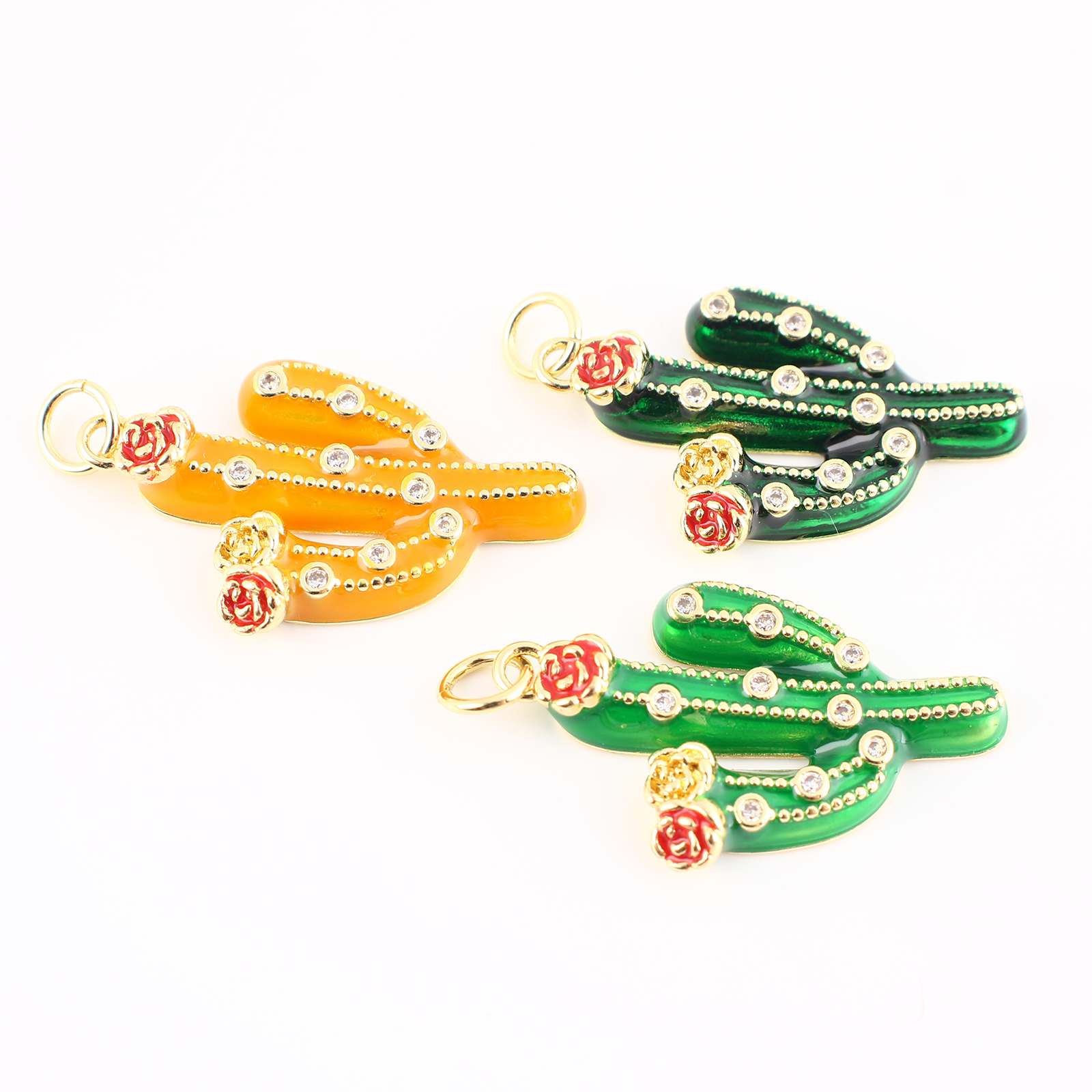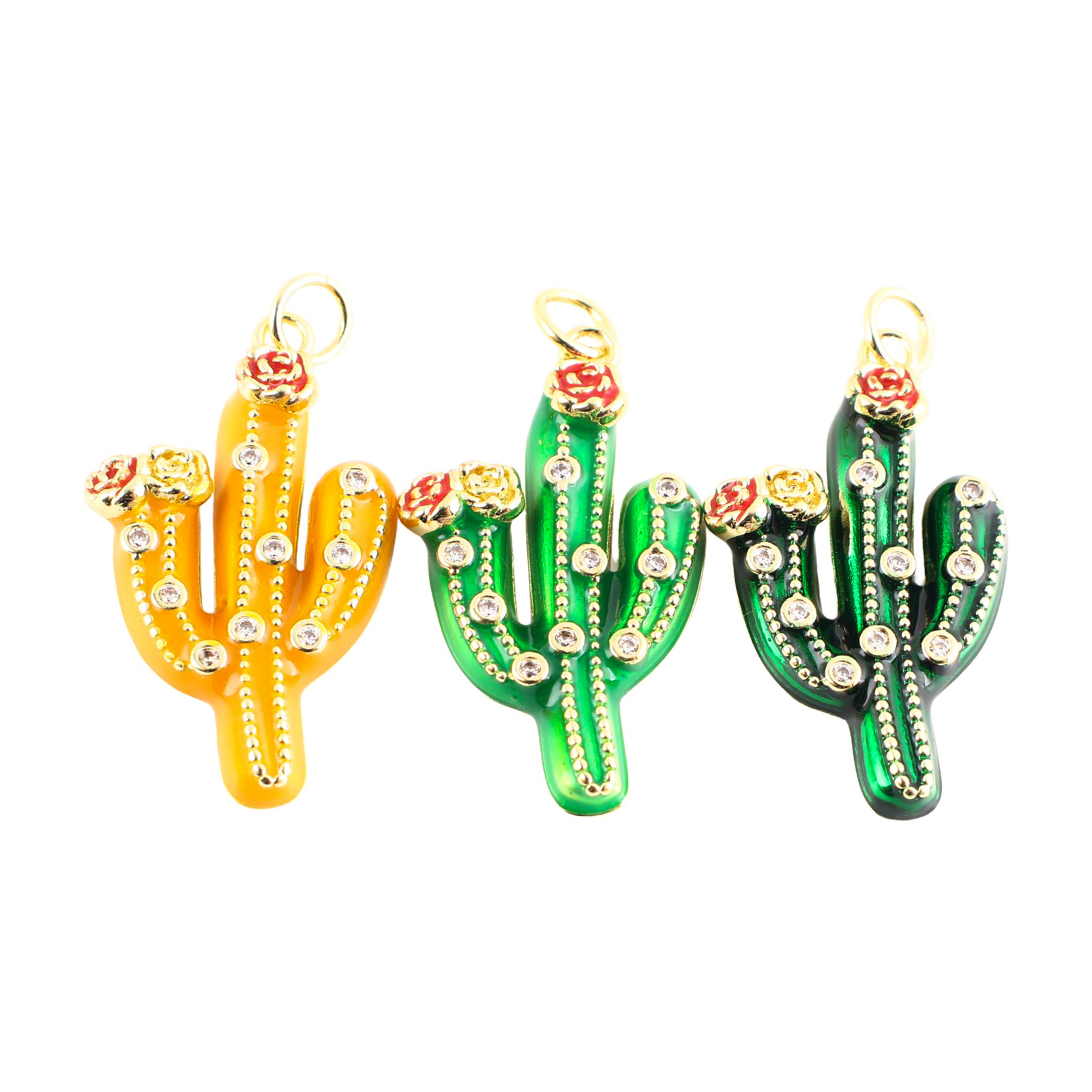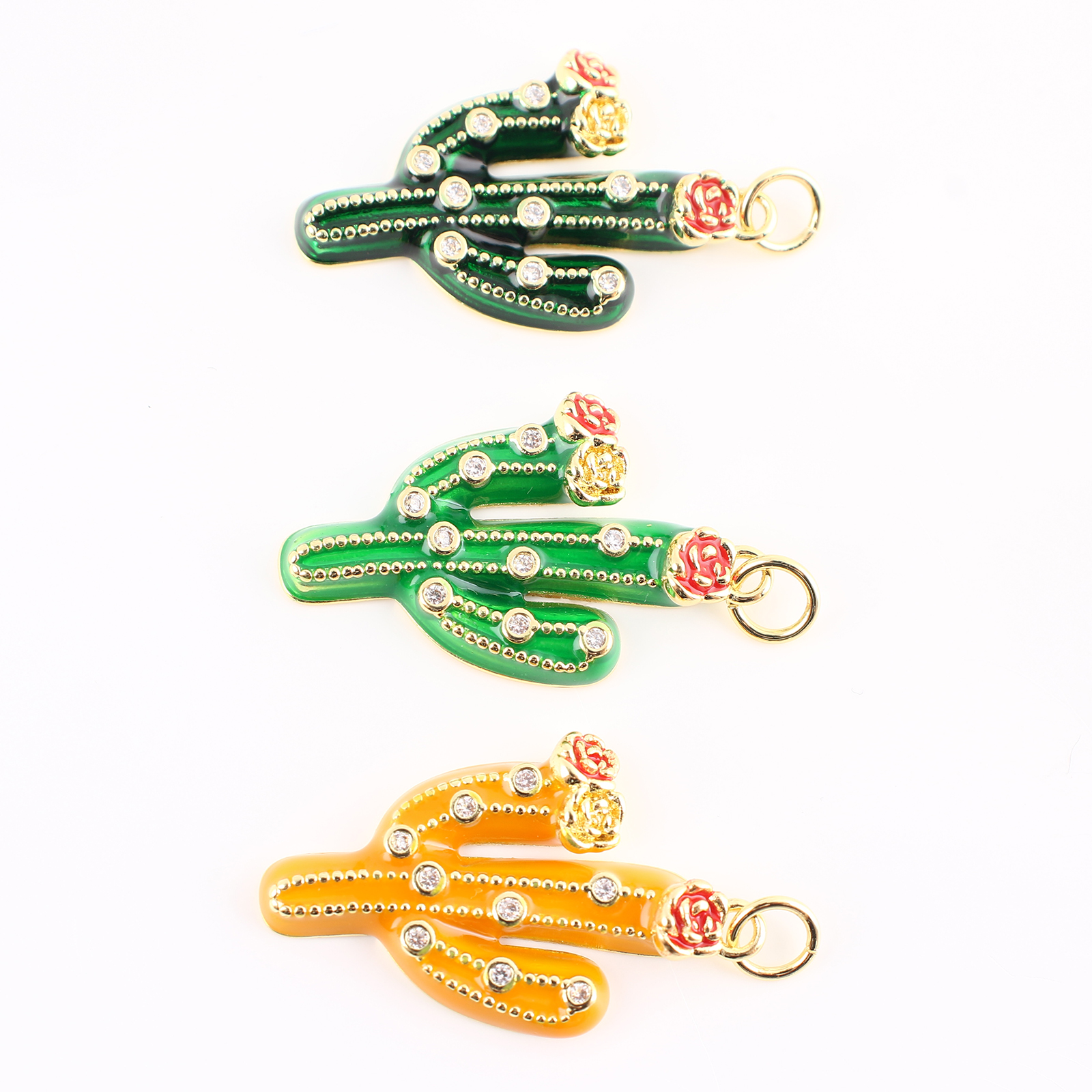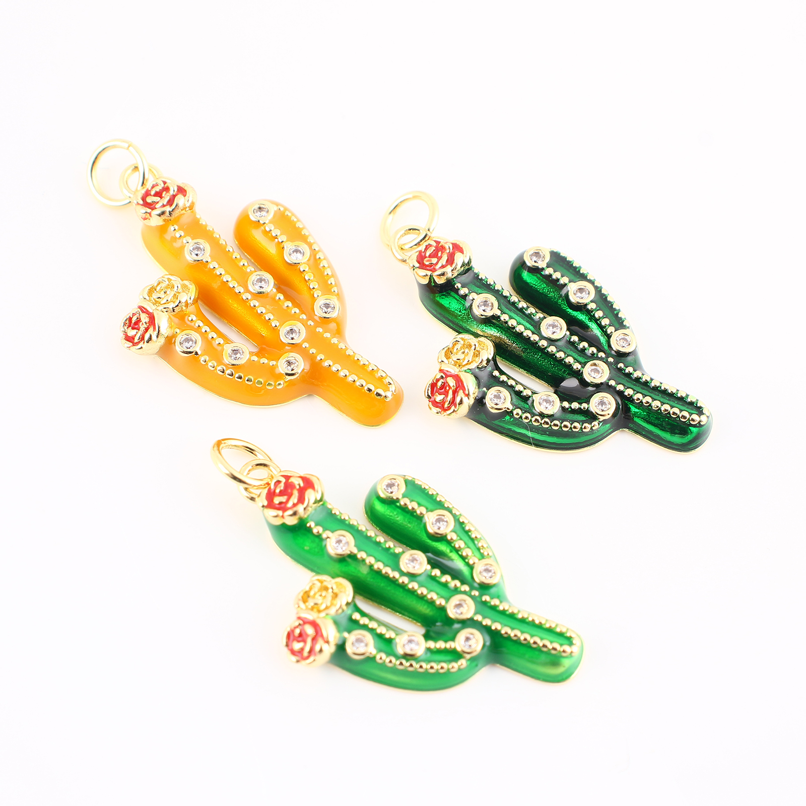 laiton Pendentif, Opuntia Stricta, Placage de couleur d'or, DIY & pavé de micro zircon & émail, plus de couleurs à choisir, 27x16x4mm, Vendu par PC