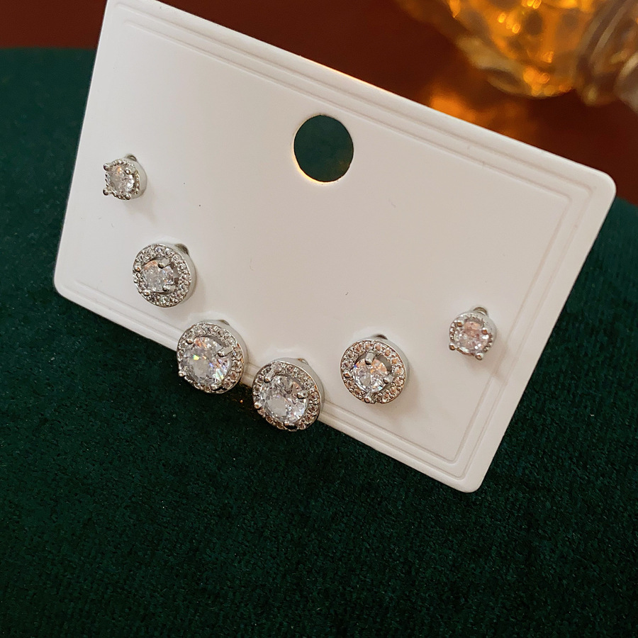 laiton Stud Set, Rond, Placage, 6 pièces & pavé de micro zircon & pour femme, plus de couleurs à choisir, 10x10mm, Vendu par fixé