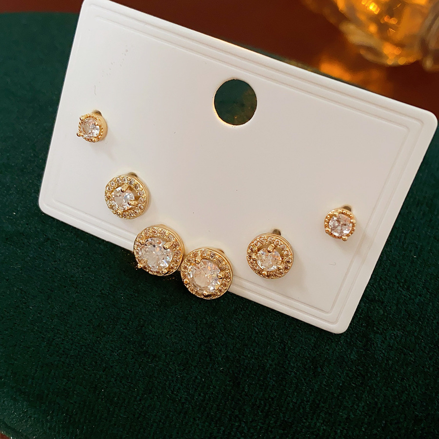 Boucles d'oreilles en laiton zircon cubique pavent, Placage, trois pièces & pour femme, doré, Vendu par fixé