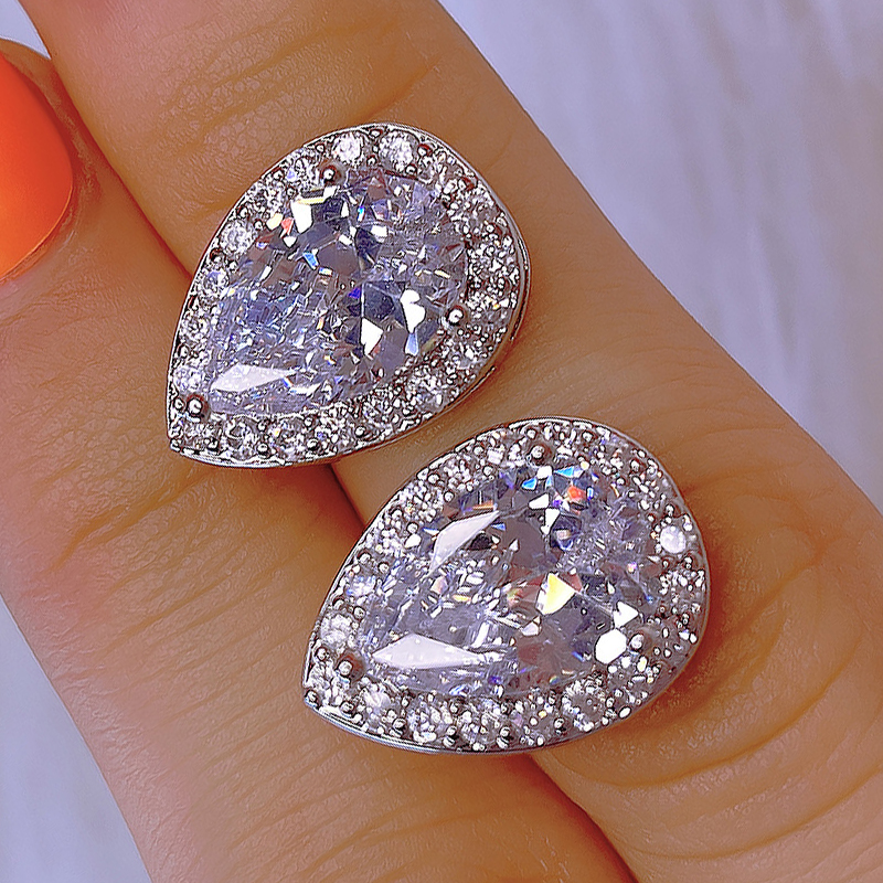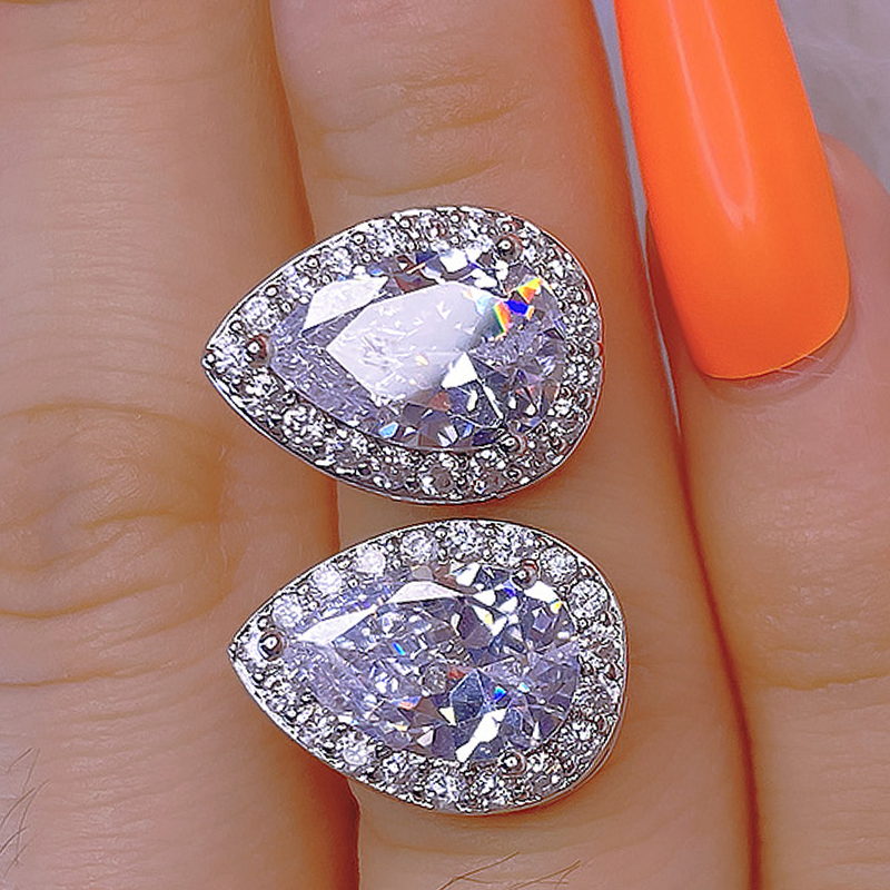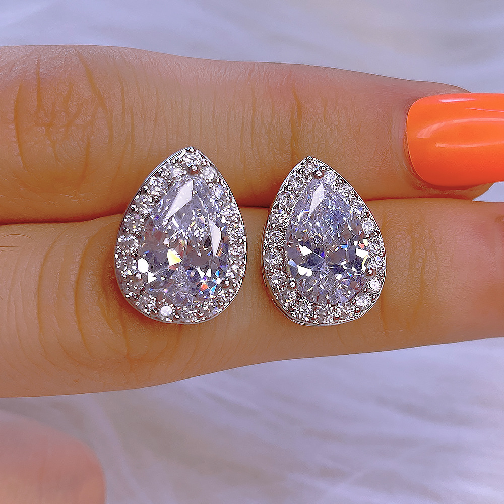 laiton boucle d oreille dormeuse, larme, Placage de couleur argentée, pavé de micro zircon & pour femme, 5x8mm, Vendu par paire