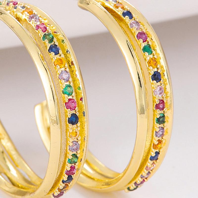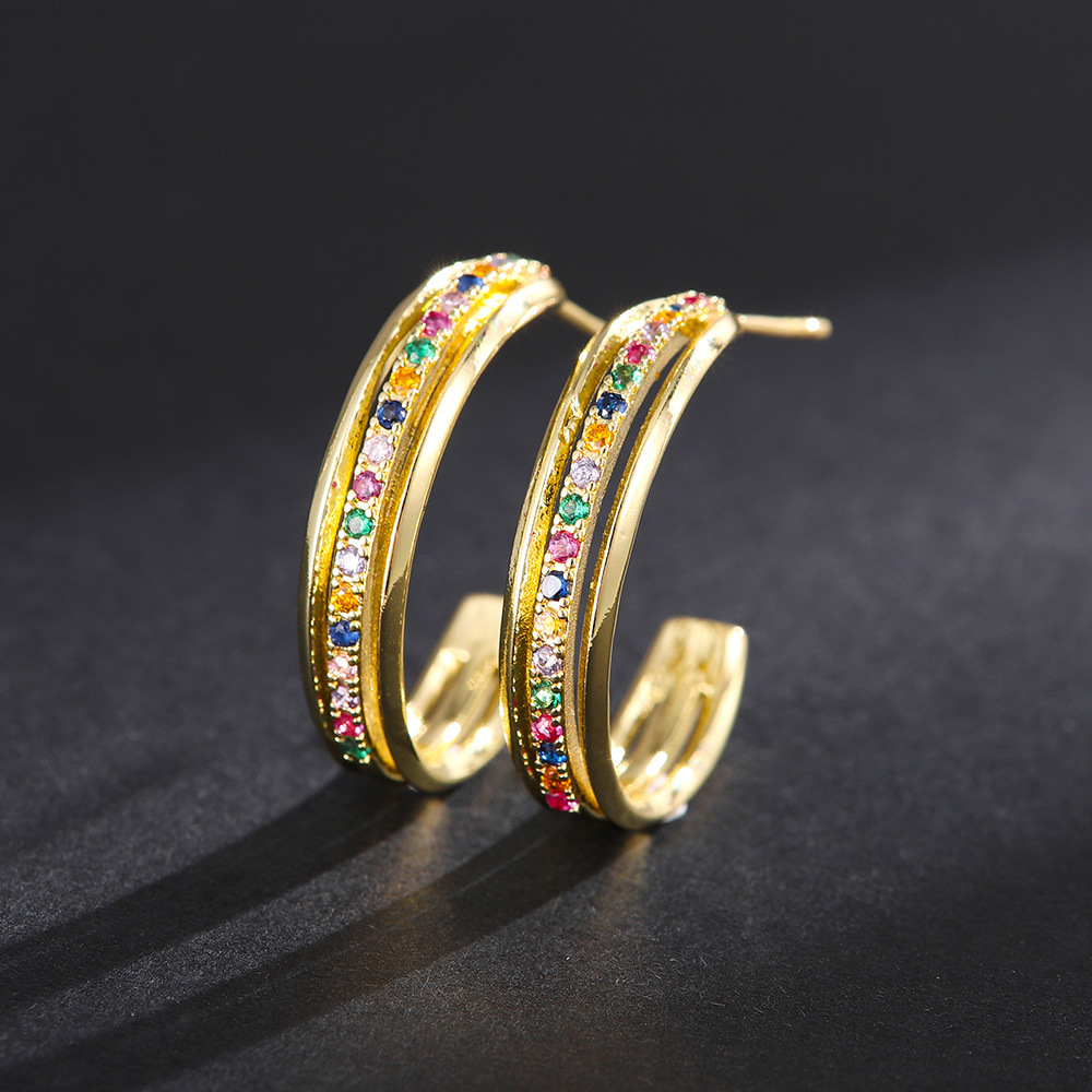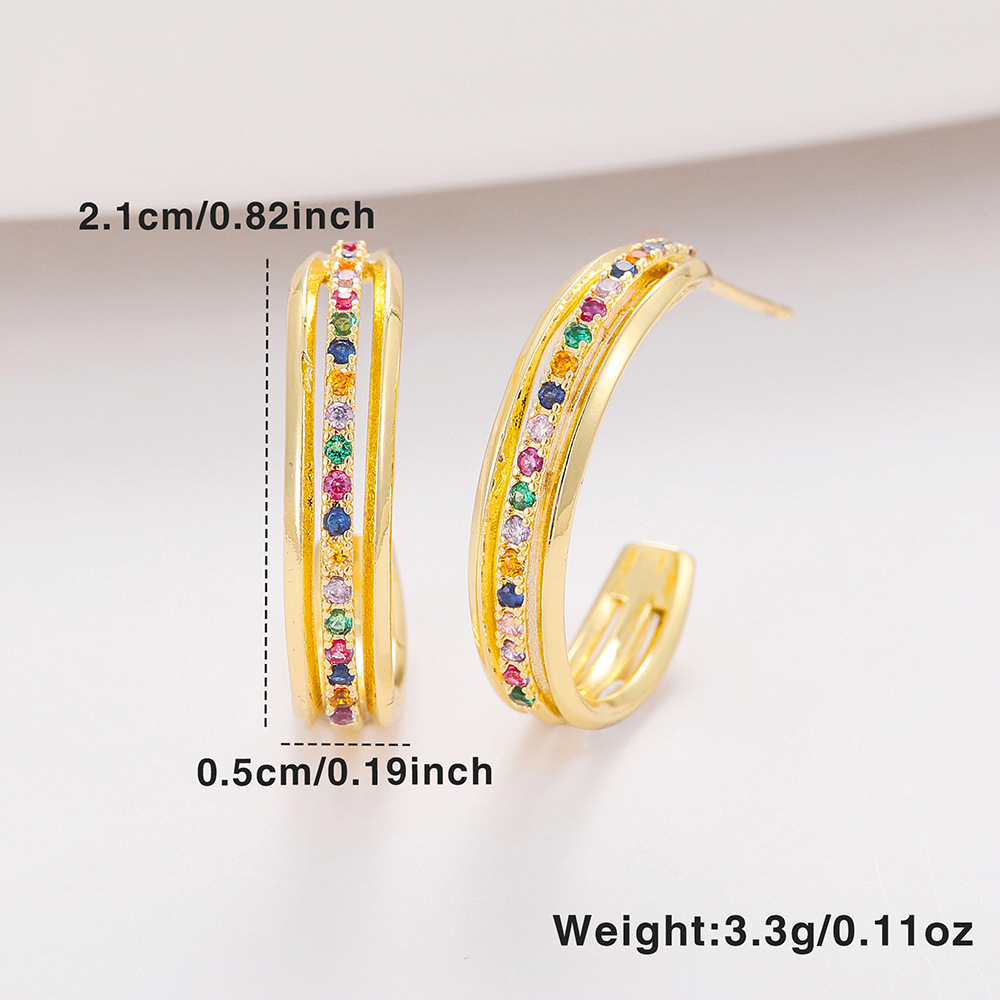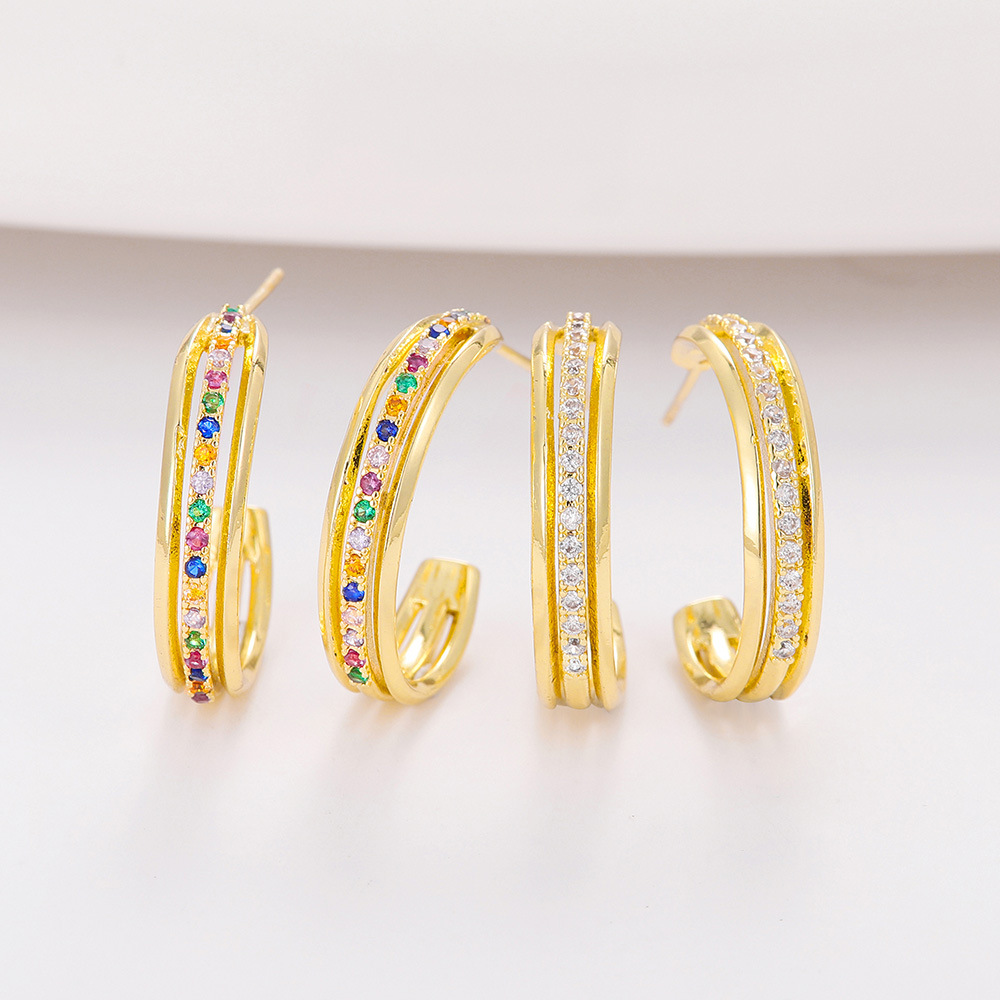 Boucles d'oreilles en laiton zircon cubique pavent, Placage, trois pièces & pour femme, doré, Vendu par fixé