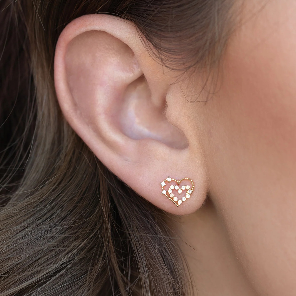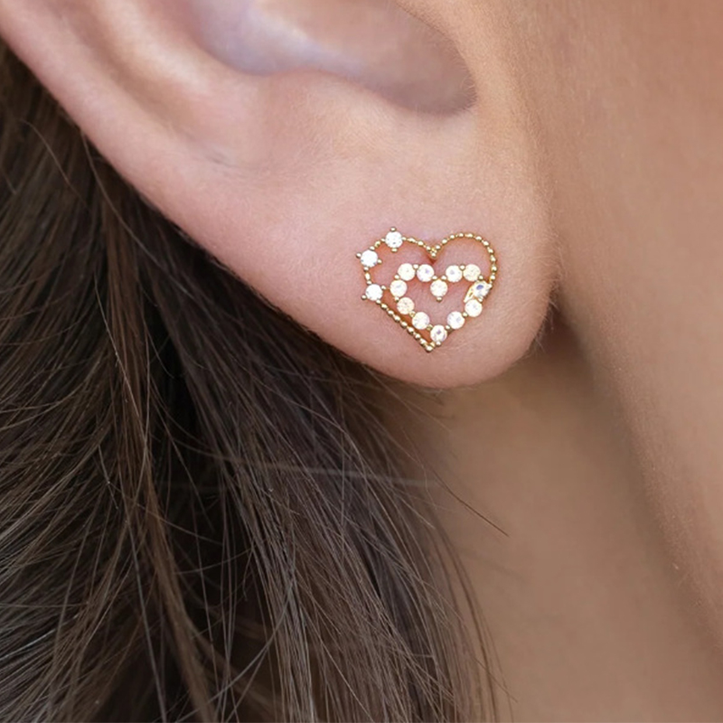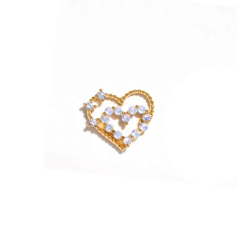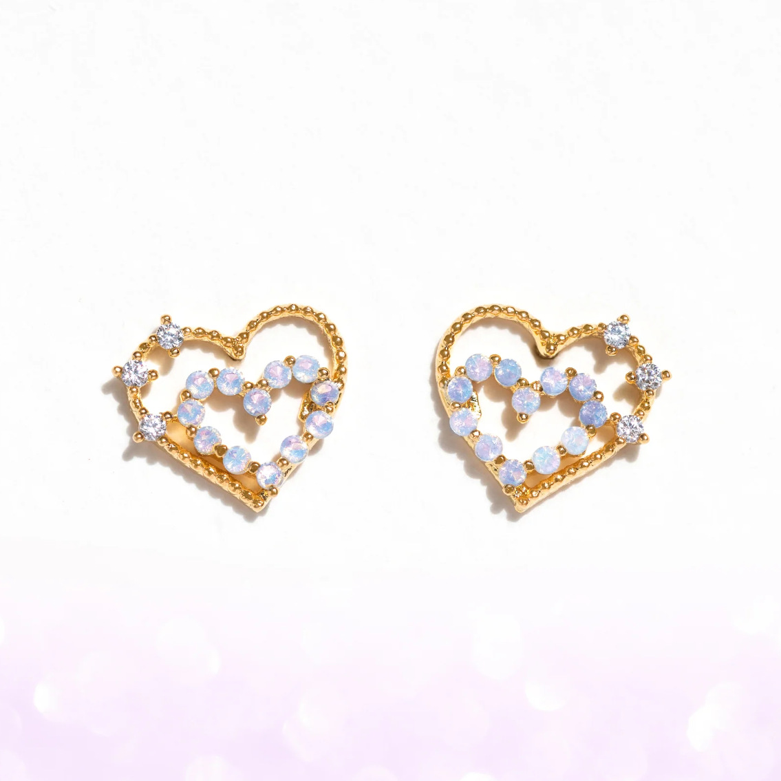 laiton boucle d oreille dormeuse, avec Opale, coeur, Placage de couleur d'or, pour femme & avec strass & creux, 13x11mm, Vendu par paire