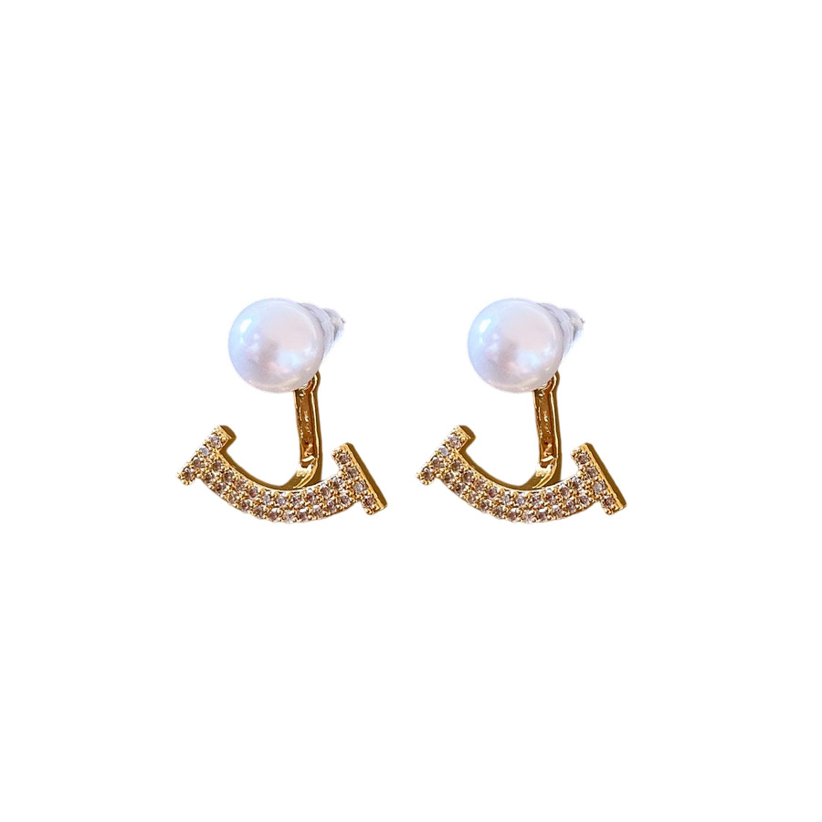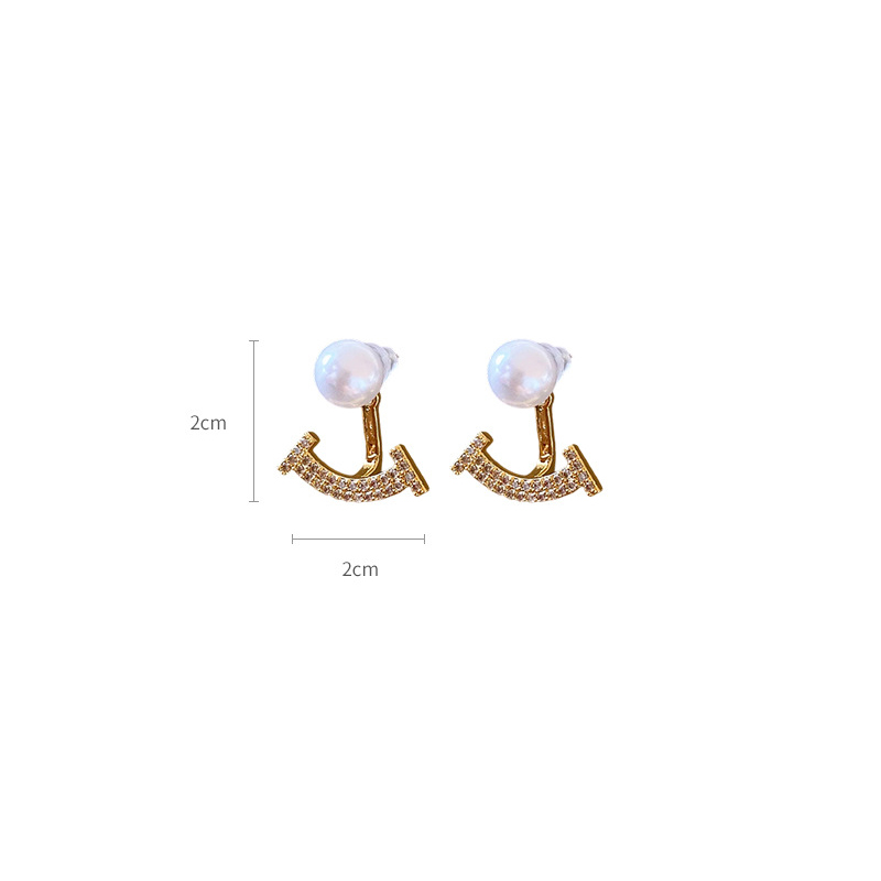 laiton boucle d oreille dormeuse, avec perle de plastique, Placage de couleur d'or, pavé de micro zircon & pour femme, 20x20mm, Vendu par paire