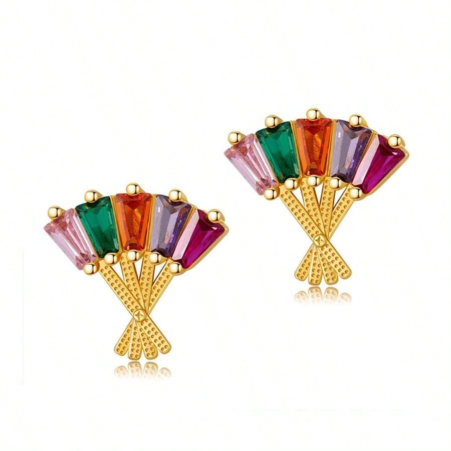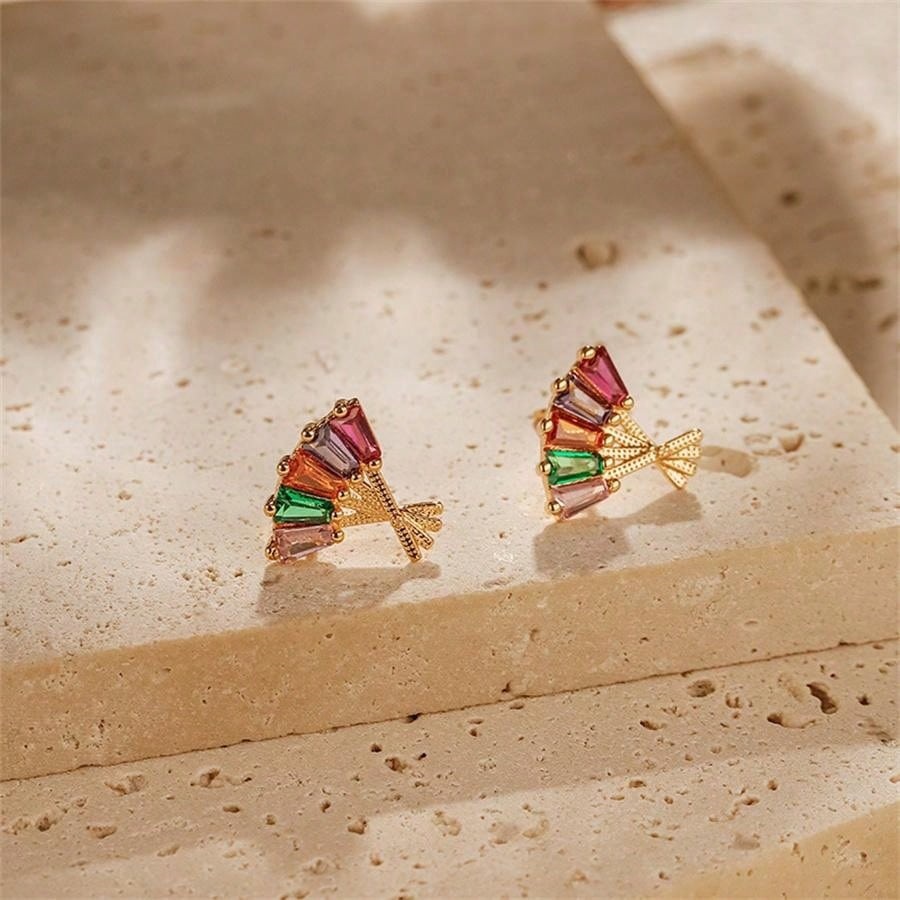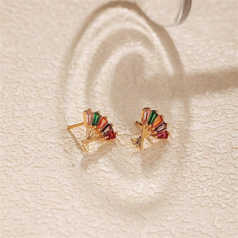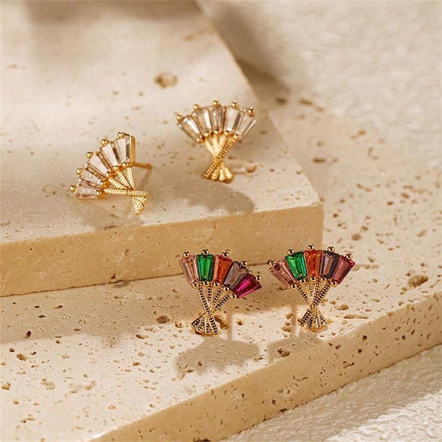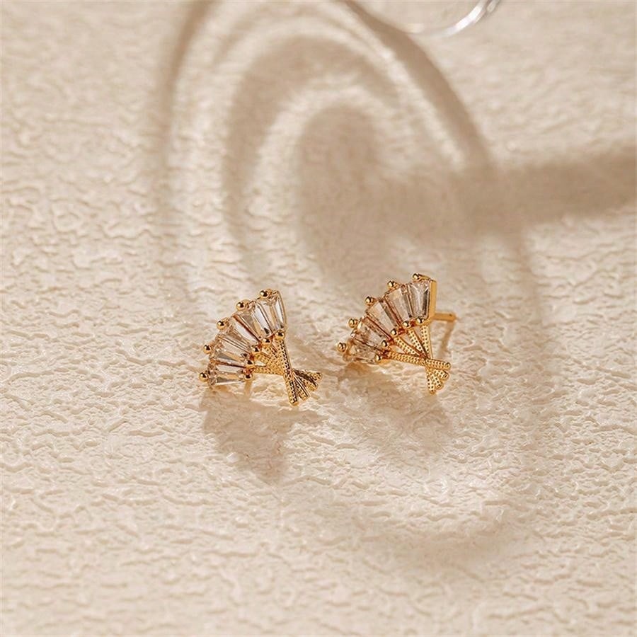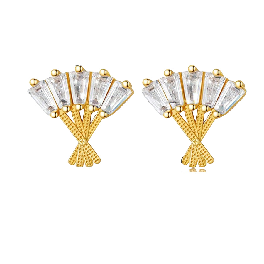 laiton boucle d oreille dormeuse, avec cristal, éventail, Placage de couleur d'or, bijoux de mode & pour femme & creux, plus de couleurs à choisir, Vendu par paire
