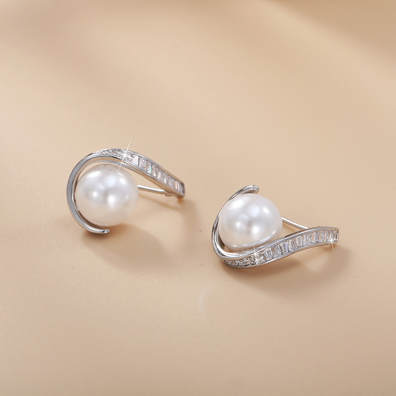 laiton boucle d oreille dormeuse, avec perle de plastique, Placage, pavé de micro zircon & pour femme, plus de couleurs à choisir, 12x19.50mm, Vendu par paire