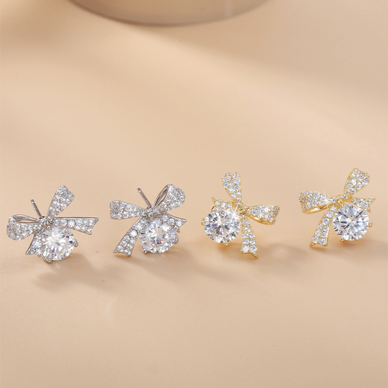 laiton boucle d oreille dormeuse, Noeud papillon, Placage, pavé de micro zircon & pour femme, plus de couleurs à choisir, 15x11.50mm, Vendu par paire